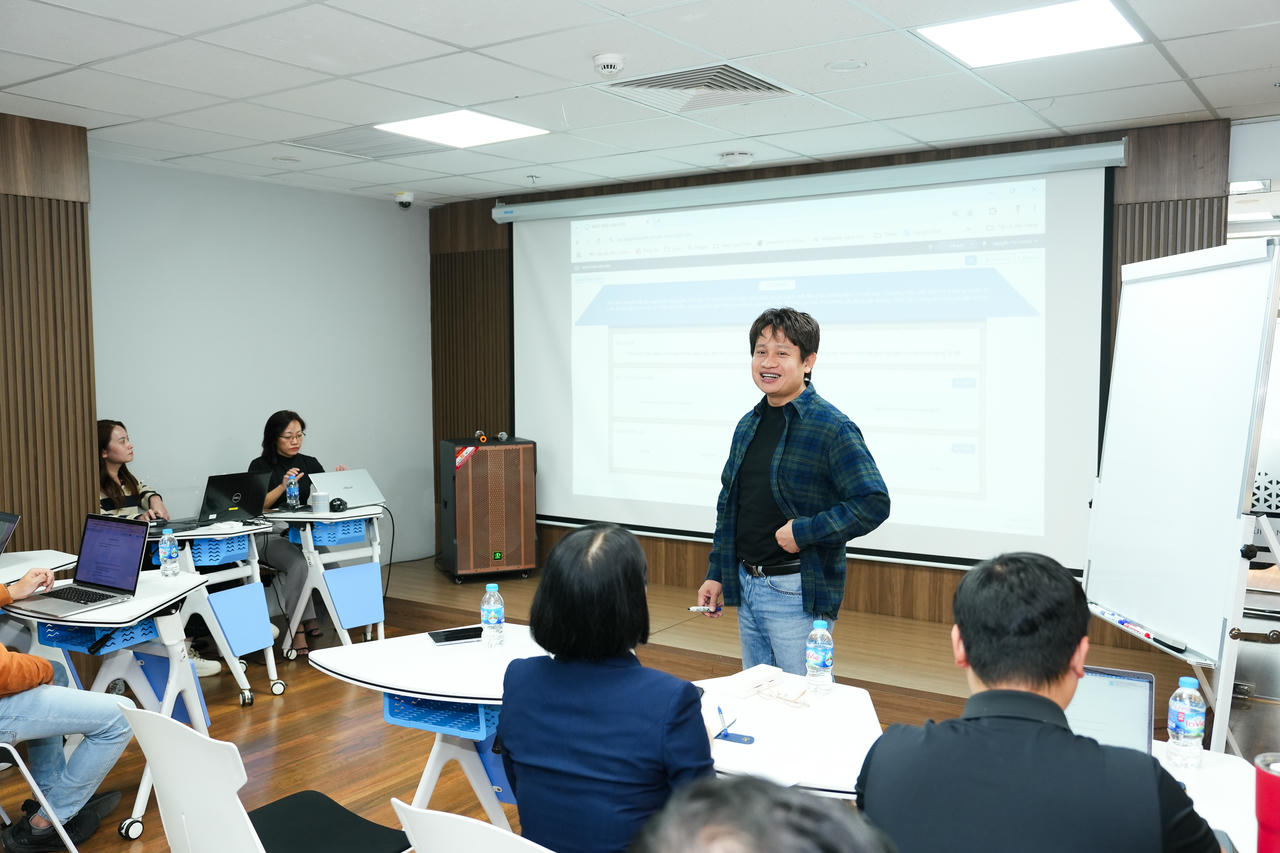 Ông Hoàng Mai Chung, Chủ tịch HĐQT Meey Group trao đổi tại buổi đào tạo |