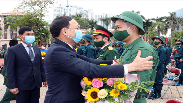 | Ủy viên Trung ương Đảng, Bí thư, Chủ tịch HĐND tỉnh Quảng Ninh Nguyễn Xuân Ký, Bí thư Đảng ủy Quân sự tỉnh, động viên các công dân tham gia thực hiện NVQS năm 2021. |