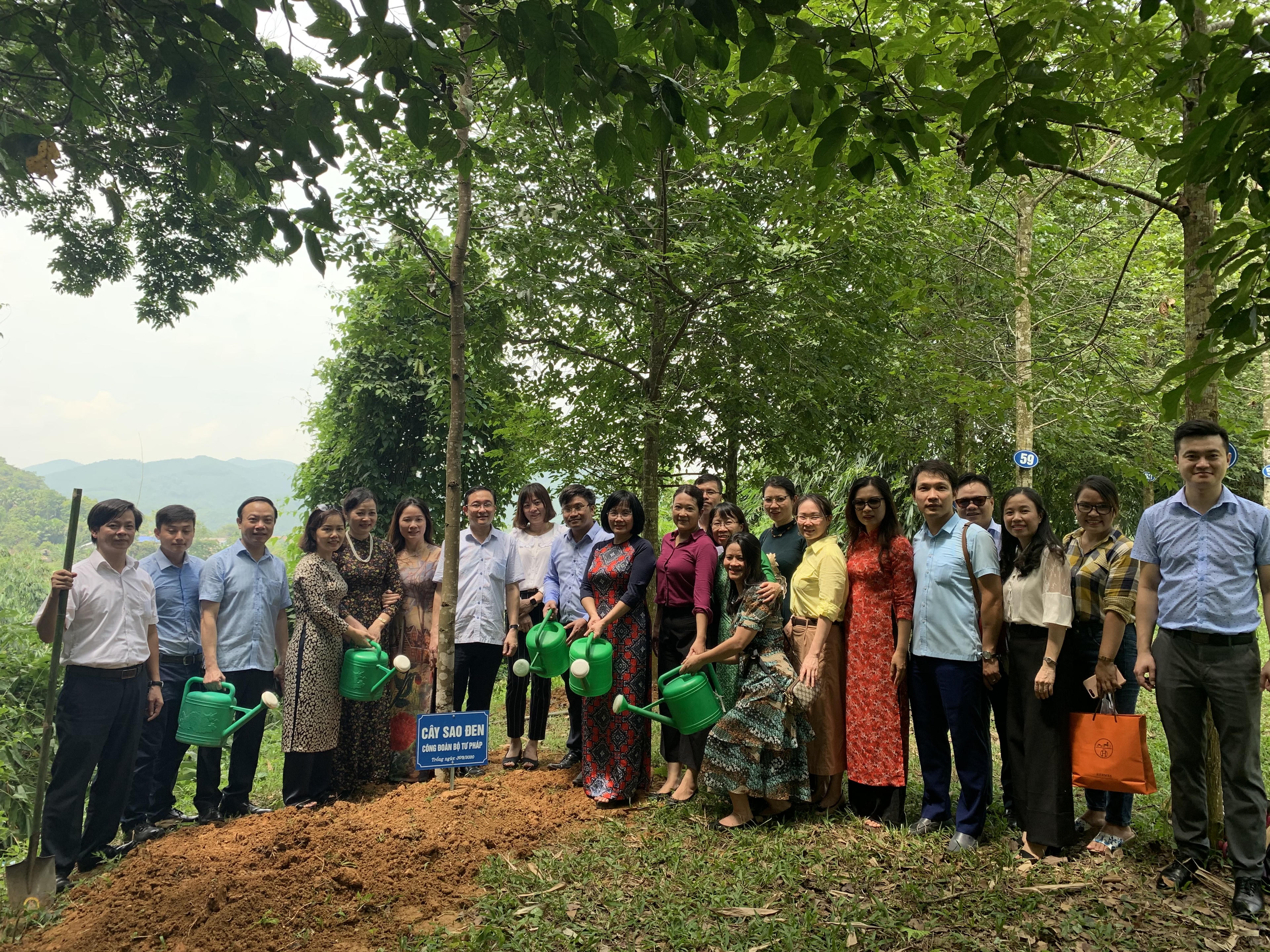 Nhân dịp này, Thứ trưởng Đặng Hoàng Oanh cùng Đoàn công tác đã trồng cây lưu niệm, chung sức tạo thêm màu xanh tươi tốt trong vườn cây của Khu di tích Bộ Tư pháp.