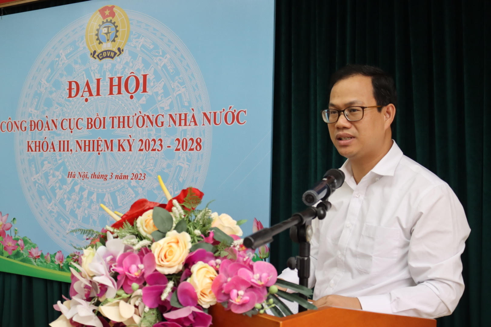 Chủ tịch Công đoàn Cục Lê Thái Phương trình bày Báo cáo tổng kết hoạt động công đoàn nhiệm kỳ 2020 – 2023 và phương hướng, nhiệm vụ, giải pháp chủ yếu nhiệm kỳ 2023 – 2028. |