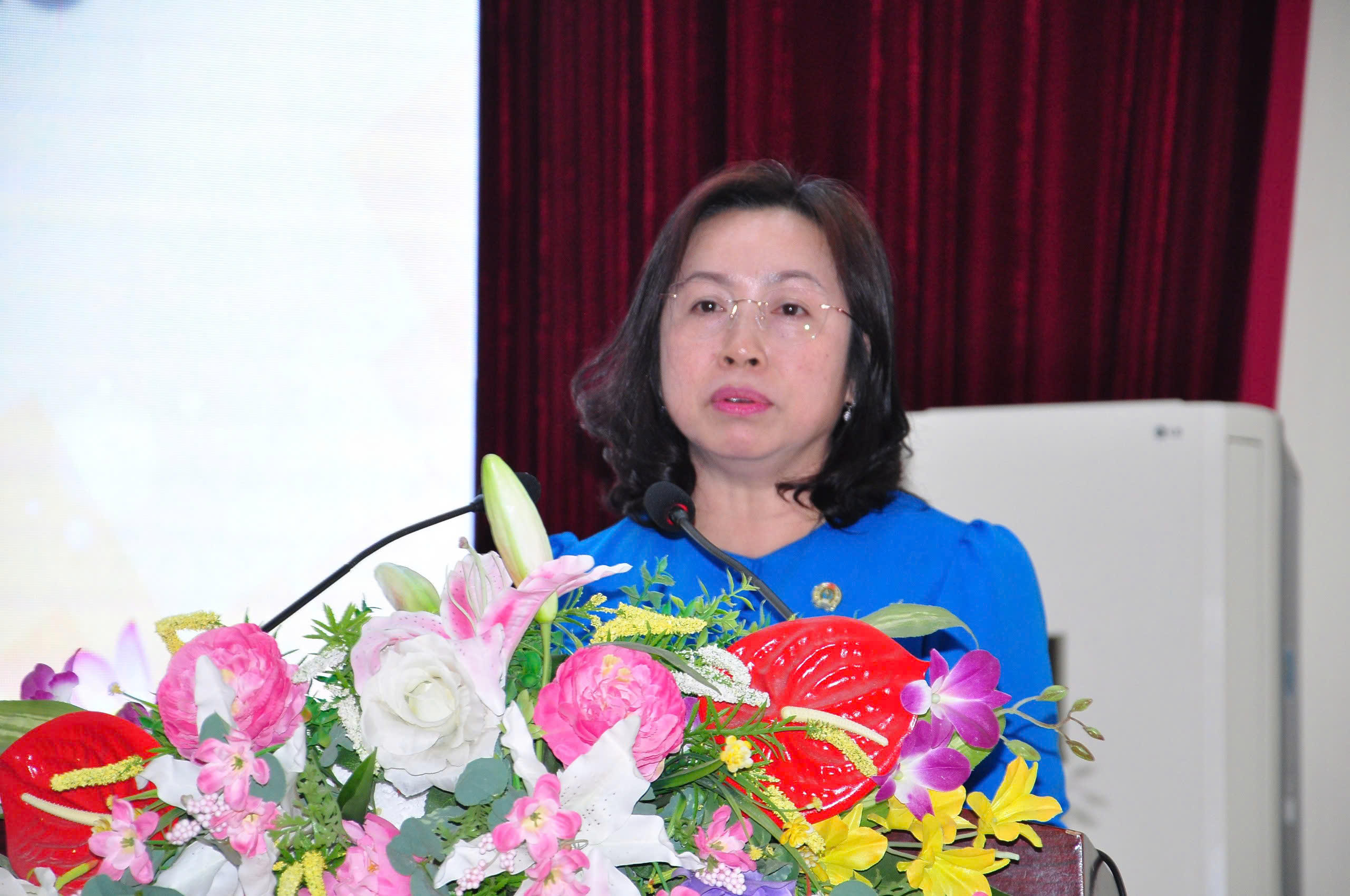 Bà Thái Thu Xương - Phó Chủ tịch Thường trực Tổng Liên đoàn Lao động Việt Nam phát biểu tại Hội nghị |