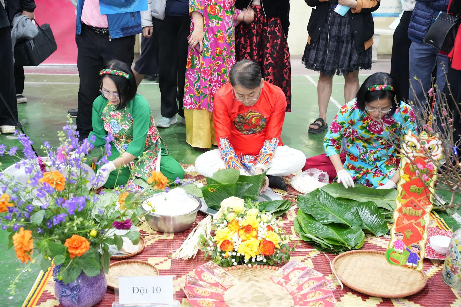 Trong không khí rộn ràng của ngày hội, không chỉ gói bánh, các đội còn giới thiệu ý nghĩa của bánh chưng - biểu tượng thiêng liêng của Tết cổ truyền Việt Nam.