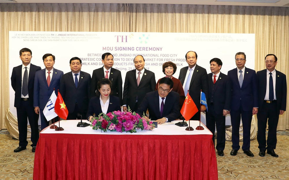 Áp dụng khoa học công nghệ đã giúp TH sản xuất ra những sản phẩm đạt tiêu chuẩn quốc tế. Hiện nay, các sản phẩm sữa của tập đoàn TH đã có mặt tại nhiều quốc gia trong khu vực Asean (Cambodia, Philippines…). Với thị trường Trung Quốc, tập đoàn TH là doanh nghiệp sữa đi đầu trong việc xúc tiến và triển khai các hoạt động xuất khẩu sữa tươi chính ngạch vào Trung Quốc từ rất sớm. Ngày 25/4/2019, tập đoàn TH đã ký kết biên bản ghi nhớ hợp tác chiến lược phát triển thị trường với đối tác Wuxi Jinqiao International Food City (đơn vị sở hữu trung tâm đầu mối hàng hóa lớn nhất Trung Quốc) về phân phối các sản phẩm sữa tươi sạch mang thương hiệu TH true MILK tại Trung Quốc.
