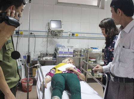 | Đoàn công tác UBND huyện thăm hỏi nạn nhân và gia đình tại bệnh viện. |