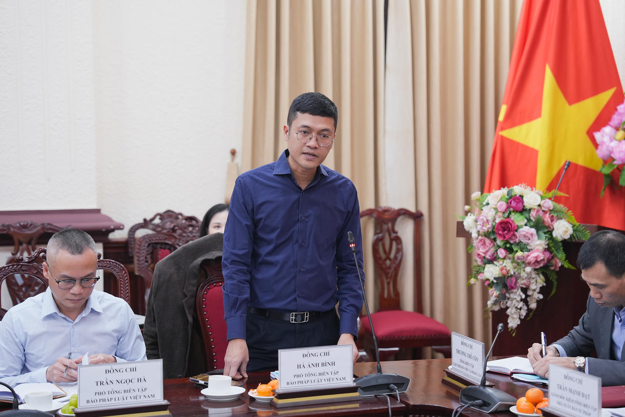 Theo báo cáo do Phó Tổng biên tập Báo Pháp luật Việt Nam Hà Ánh Bình trình bày tại Hội nghị, Báo PLVN cho biết: Năm 2024, với sự quan tâm, chỉ đạo kịp thời của Ban Tuyên giáo Trung ương, Bộ Thông tin Truyền thông, Lãnh đạo Bộ Tư pháp và sự phối hợp của các đơn vị thuộc Bộ, tiếp tục là năm Báo Pháp luật Việt Nam nỗ lực vượt qua những khó khăn thách thức, để khẳng định vai trò, vị thế của cơ quan ngôn luận của Bộ, ngành Tư pháp.