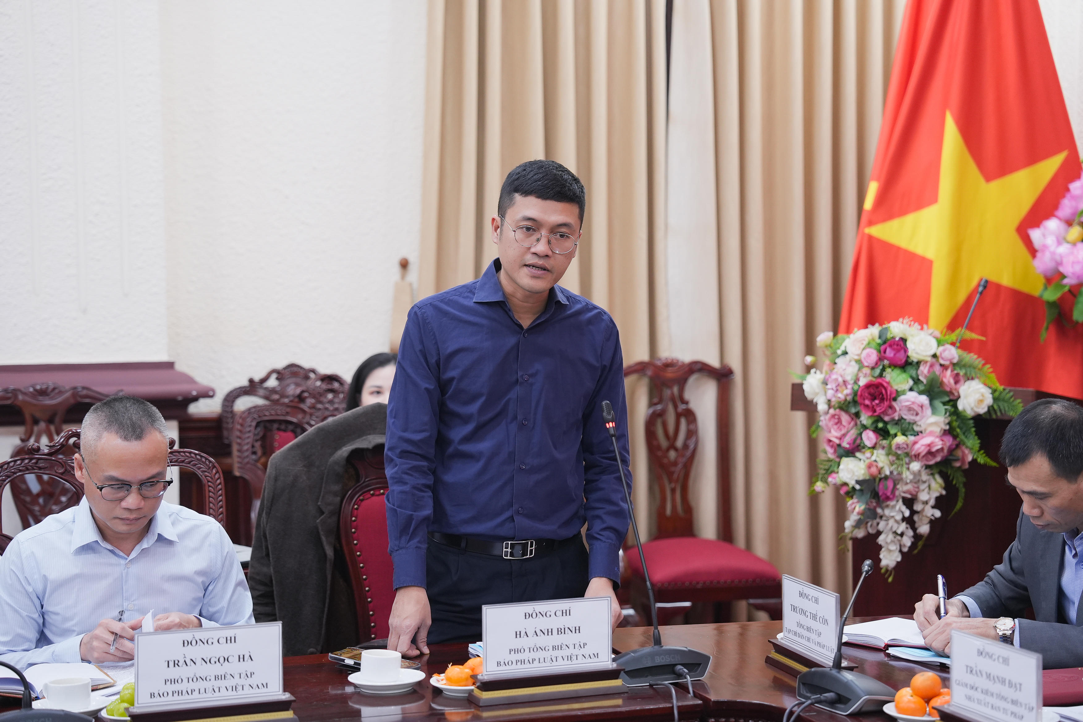 Ông Trần Ngọc Hà, Phó Tổng Biên tập Báo PLVN phát biểu tại Hội nghị. |