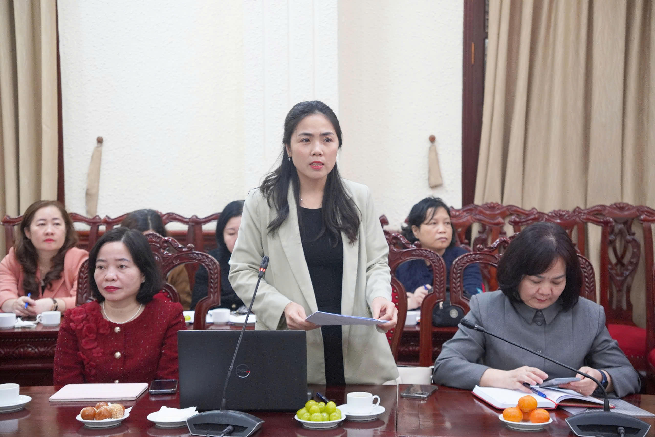Phó Tổng Biên tập Báo PLVN Hà Ánh Bình báo cáo tại Hội nghị. |