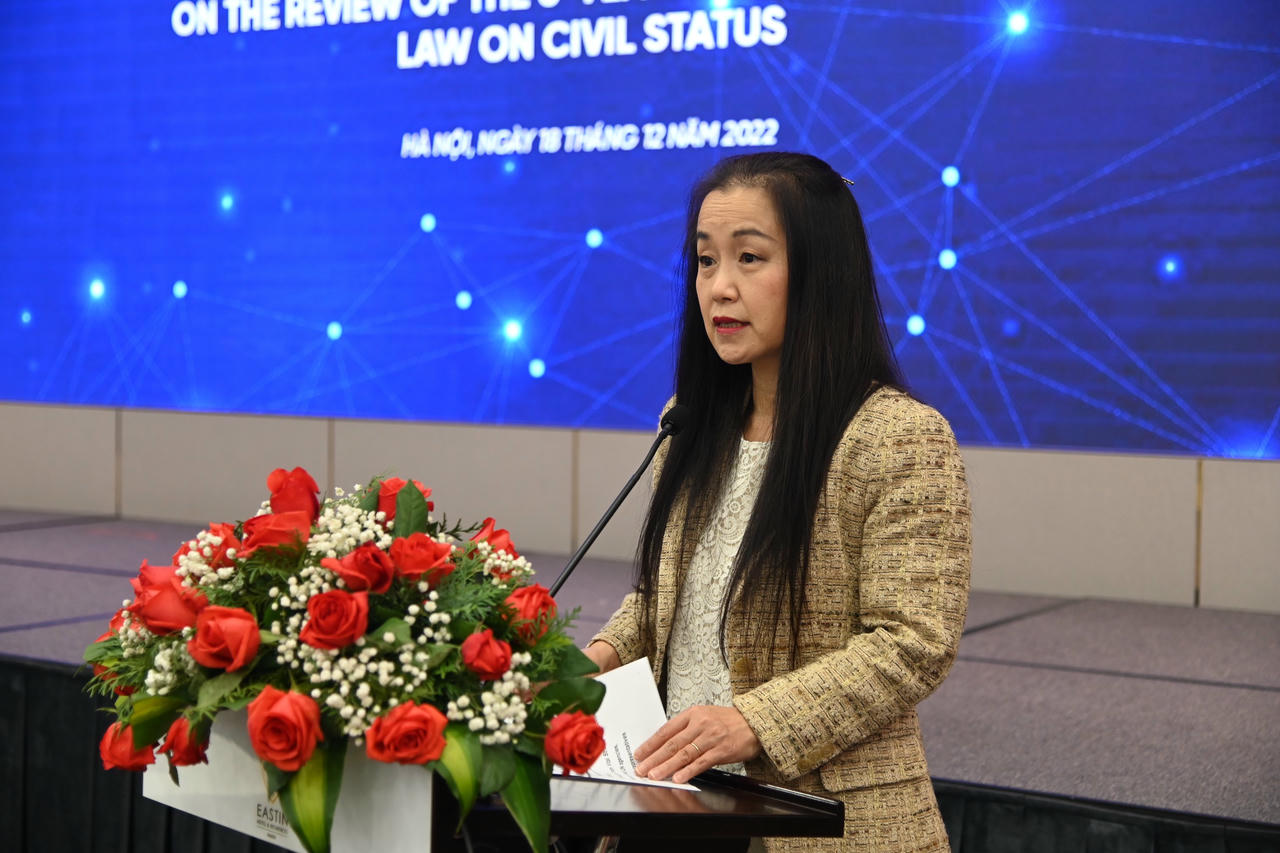 Còn bà Naomi Kitahara, Trưởng đại diện Quỹ dân số Liên hợp quốc (UNFPA) tại Việt Nam bày tỏ vinh dự khi được đồng chủ trì Hội nghị để cùng trao đổi các giải pháp bảo vệ quyền và lợi ích hợp pháp của người dân trong công tác hộ tịch. Theo đánh giá của Bà, với vai trò cơ quan chủ trì trong triển khai Luật Hộ tịch, Bộ Tư pháp đã triển khai nhiều giải pháp đồng bộ, giúp công tác hộ tịch đạt được nhiều kết quả đáng khích lệ như: hoàn thiện các văn bản hướng dẫn trong công tác hộ tịch, hiện đại hóa việc đăng ký, thống kê hộ tịch, nâng cao tỷ lệ đăng ký hộ tịch của người dân.