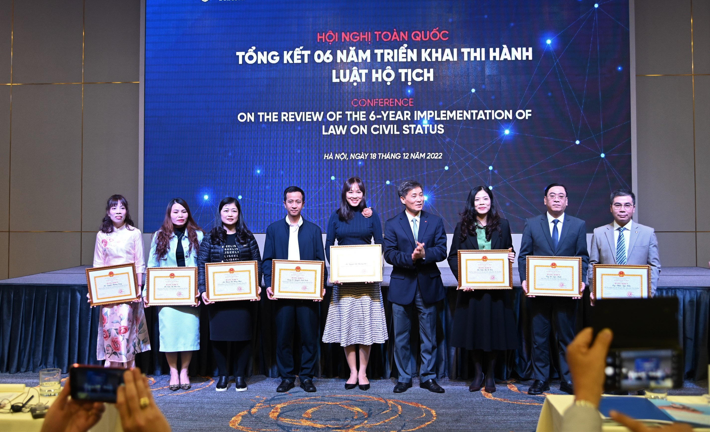 Nhân dịp này, Hội nghị đã trao tặng Bằng khen của Bộ trưởng Bộ Tư pháp cho 22 tập thể, 17 cá nhân có thành tích xuất sắc trong 6 năm triển khai thi hành Luật Hộ tịch.