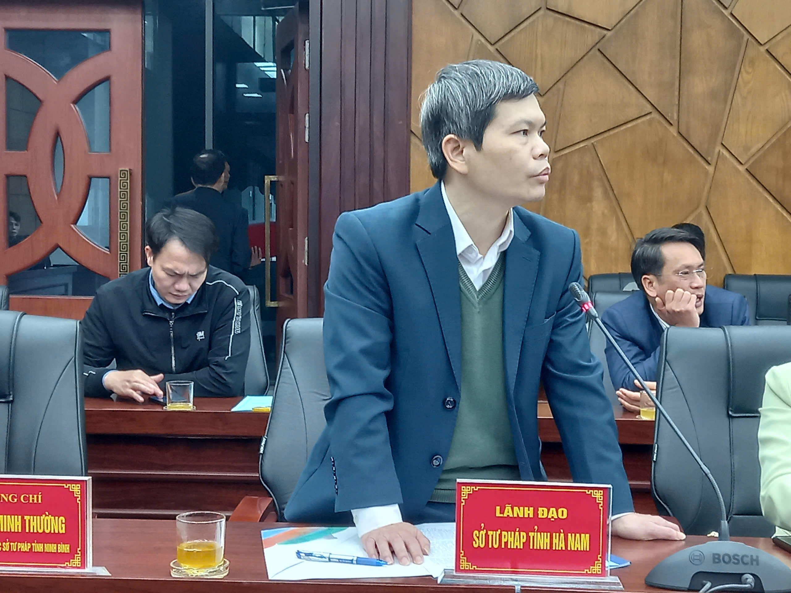 Ông Vũ Minh Hậu, Phó Giám đốc Sở Tư pháp tỉnh Hà Nam trình bày tham luận tại Hội nghị. |