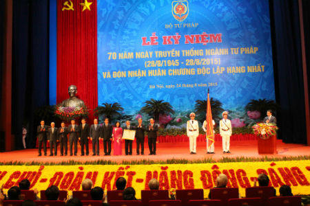 (PLO) - Hôm qua (24/8), tại Hà Nội, Bộ Tư pháp đã long trọng kỷ niệm 70 năm Ngày truyền thống ngành Tư pháp (28/8/1945 – 28/8/2015) và đón nhận Huân chương Độc lập hạng Nhất.