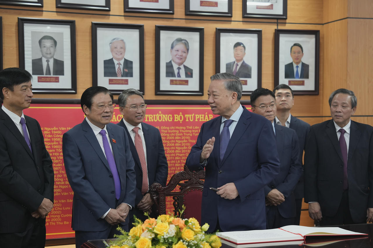 Tổng Bí thư Tô Lâm thăm Phòng Truyền thống Bộ Tư pháp. |