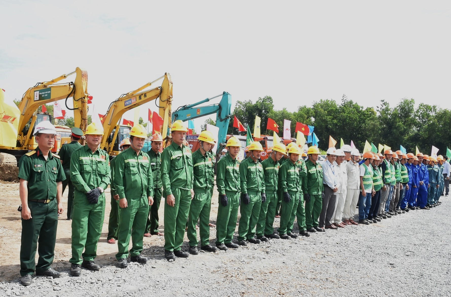 Nhân lực và xe máy của Binh đoàn 12 trên công trường cao tốc Cần Thơ - Hậu Giang |