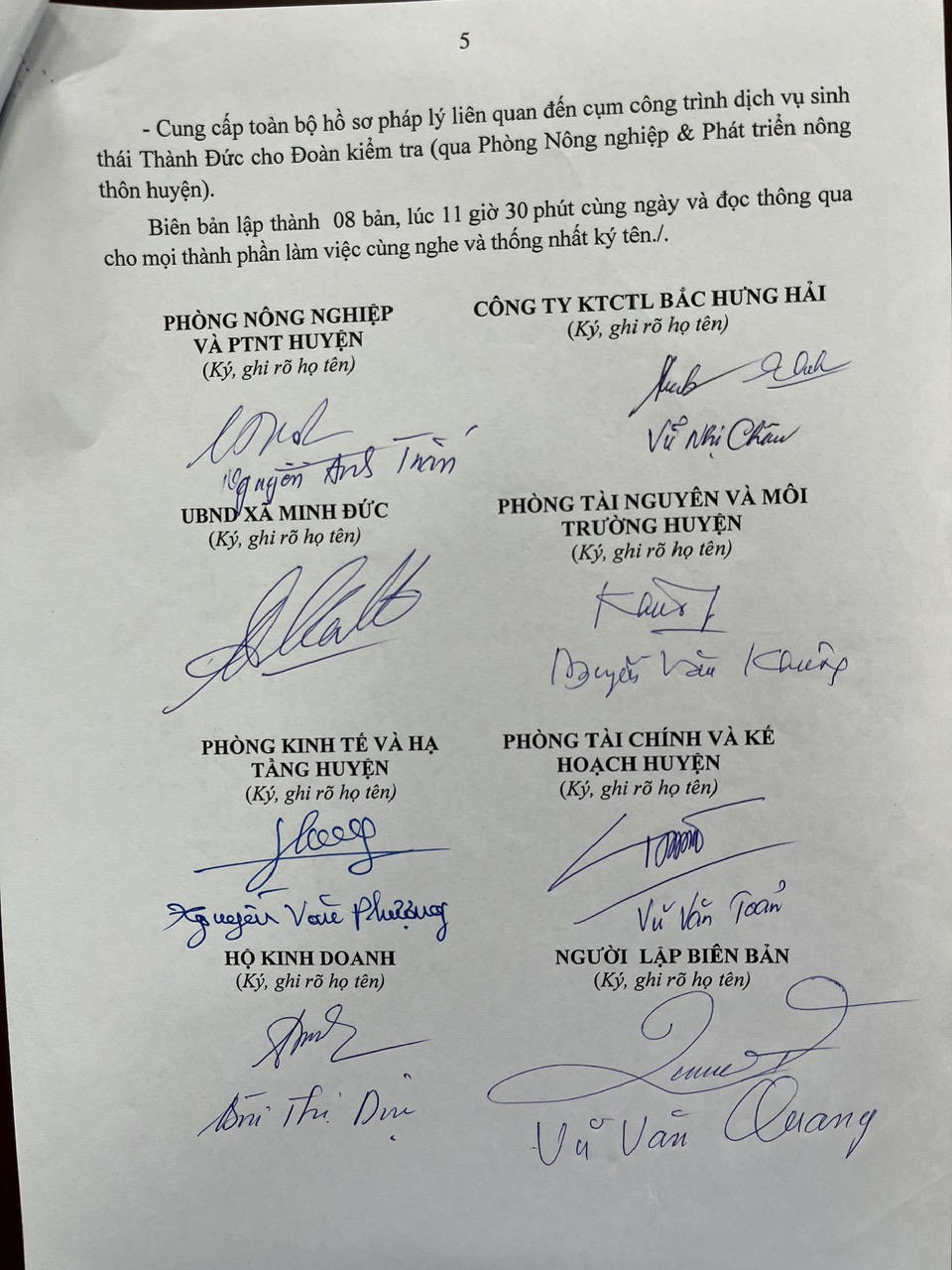 Theo Đoàn kiểm tra, với các hành vi vi phạm trên của hộ kinh doanh Bùi Duy Văn, xây dựng cụm công trình dịch vụ sinh thái Thành Đức trong phạm vi bảo vệ công trình thuỷ lợi là không đúng giấy phép Cục Thuỷ lợi, Luật Xây dựng, Luật Phòng cháy, chữa cháy. Từ đó Đoàn kiểm tra đề nghị UBND xã, hộ kinh doanh và các đơn vị liên quan cung cấp các giấy tờ có liên quan đến xây dựng cụm công trình nói trên.