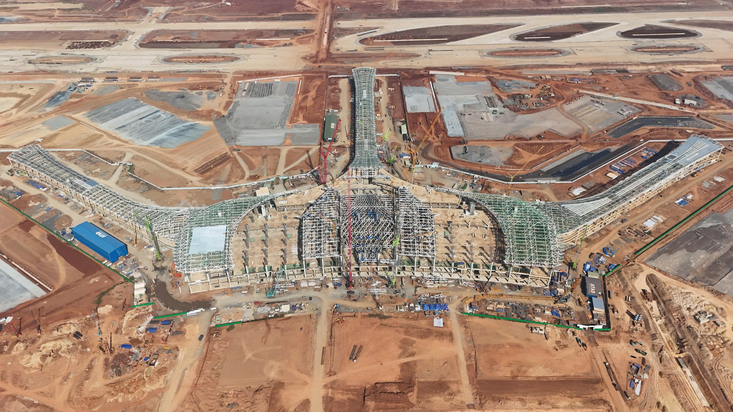 Tại khu vực nhà ga hành khách - “trái tim” của dự án, phần khung thép chính đã dần hoàn thiện. Các dãy kèo thép chính tại khu cánh đã lắp đặt xong 100%, trong khi khu trung tâm cũng đạt 80%. Phần mái nhà ga ở các cánh đang được lợp, nhiều khu vực gần hoàn thành. Đáng chú ý, đội ngũ kỹ sư, công nhân đã bắt đầu lắp đặt những tấm kính đầu tiên, bắt đầu từ kính mái lấy sáng và hệ vách kính mặt dựng.