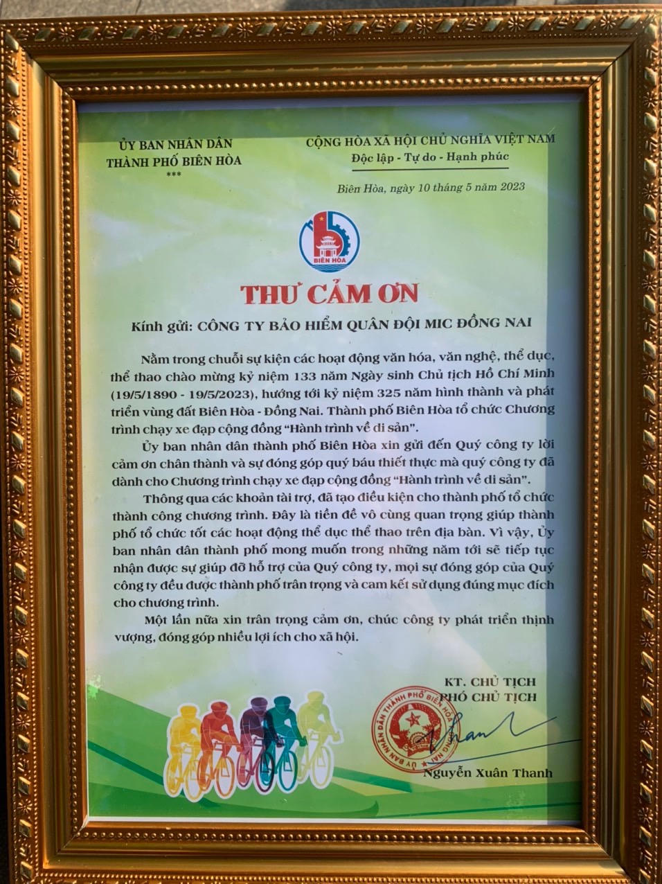 Thư cảm ơn của UBND TP. Biên Hòa |