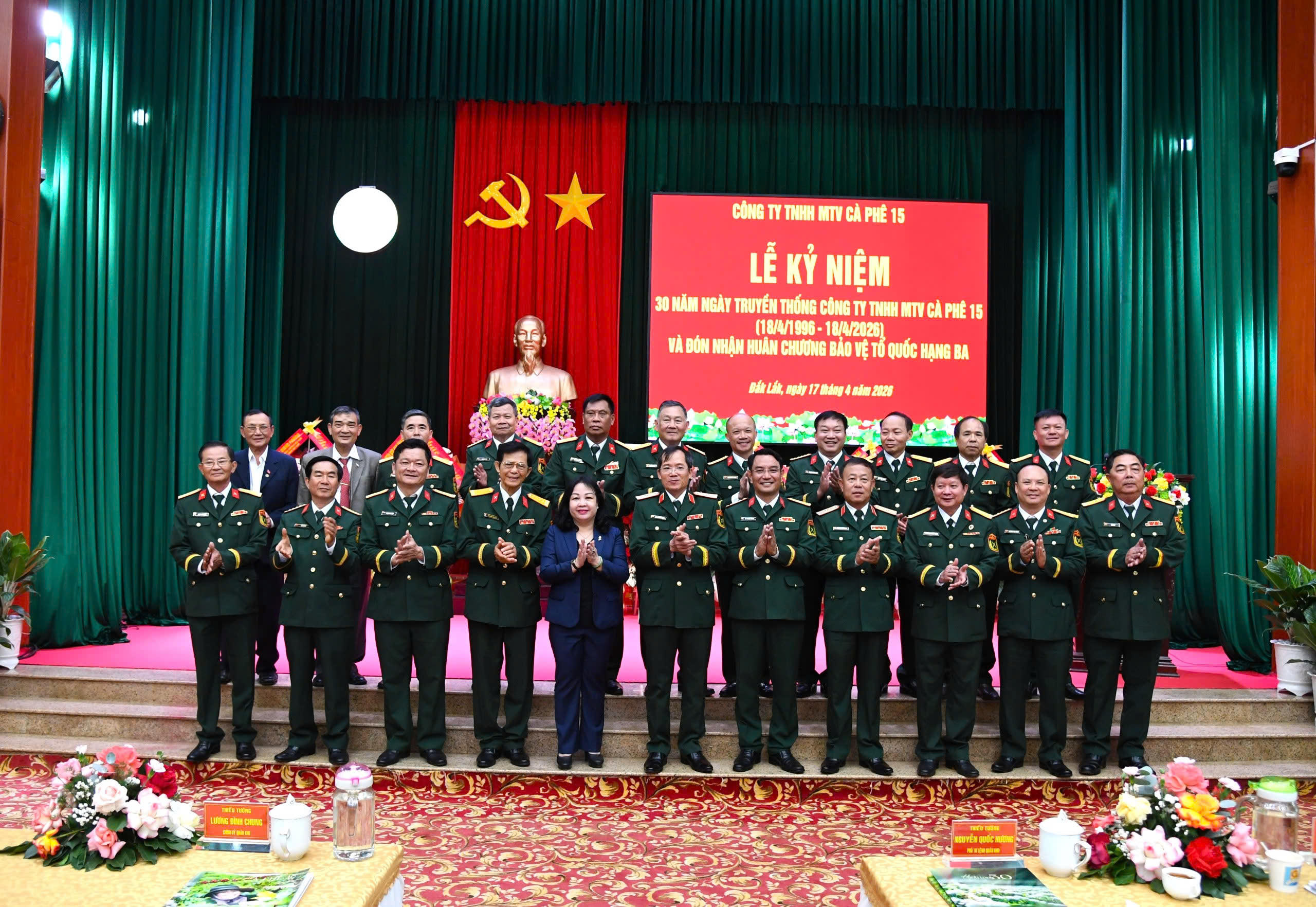 Ghi nhận những đóng góp to lớn trong suốt quá trình xây dựng và phát triển, nhân dịp này, Công ty TNHH MTV Cà phê 15 vinh dự được Chủ tịch nước tặng thưởng Huân chương Bảo vệ Tổ quốc hạng Ba. Đây là phần thưởng cao quý, thể hiện sự ghi nhận của Đảng, Nhà nước đối với những nỗ lực bền bỉ của các thế hệ cán bộ, công nhân, người lao động Công ty trong thực hiện nhiệm vụ phát triển kinh tế gắn với củng cố quốc phòng, an ninh trên địa bàn chiến lược Tây Nguyên.