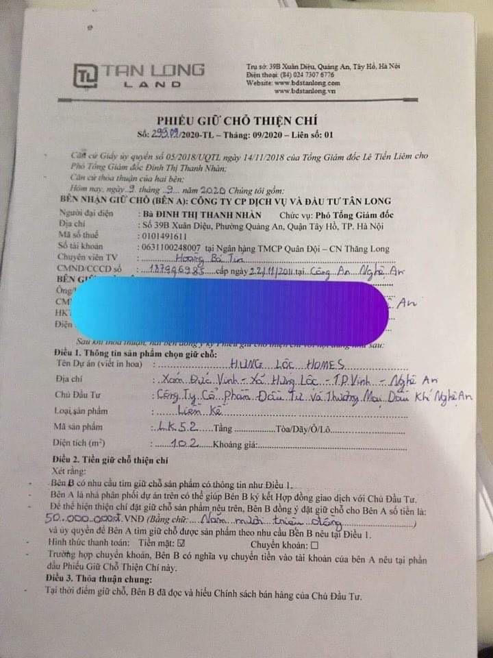 Cùng với việc chưa được giao đất đã rầm rộ thi công, Cty CP Dầu khí Nghệ An còn "uỷ quyền" cho Cty dịch vụ đấu giá Tân Long rao bán đất và nhận tiền cọc của khách hàng thông qua “phiếu giữ chỗ thiện chí”. Ký hợp đồng Đảm bảo về việc mua bất động sản tại Dự án này.