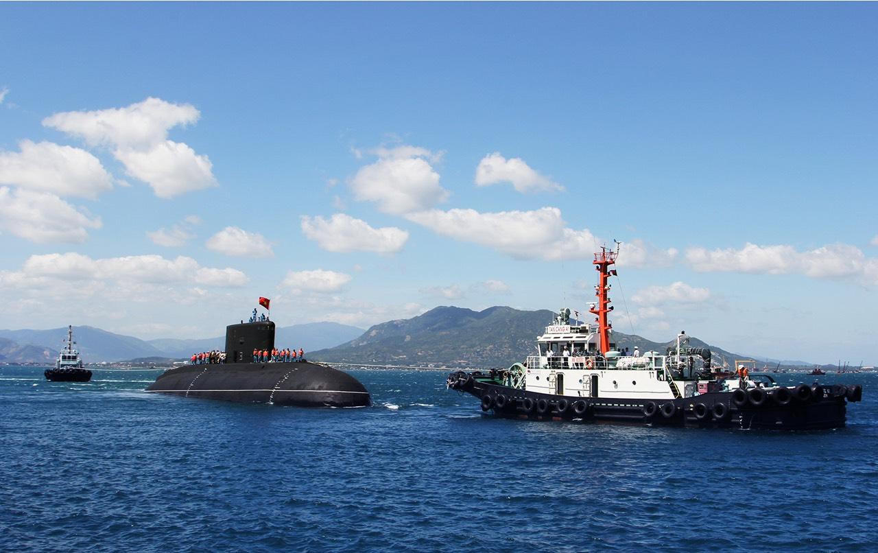 Tàu Tân cảng A1 và Tân cảng A2 lai dắt tàu ngầm Kilo cập cảng Cam Ranh (Ảnh: Quang Tiến) |