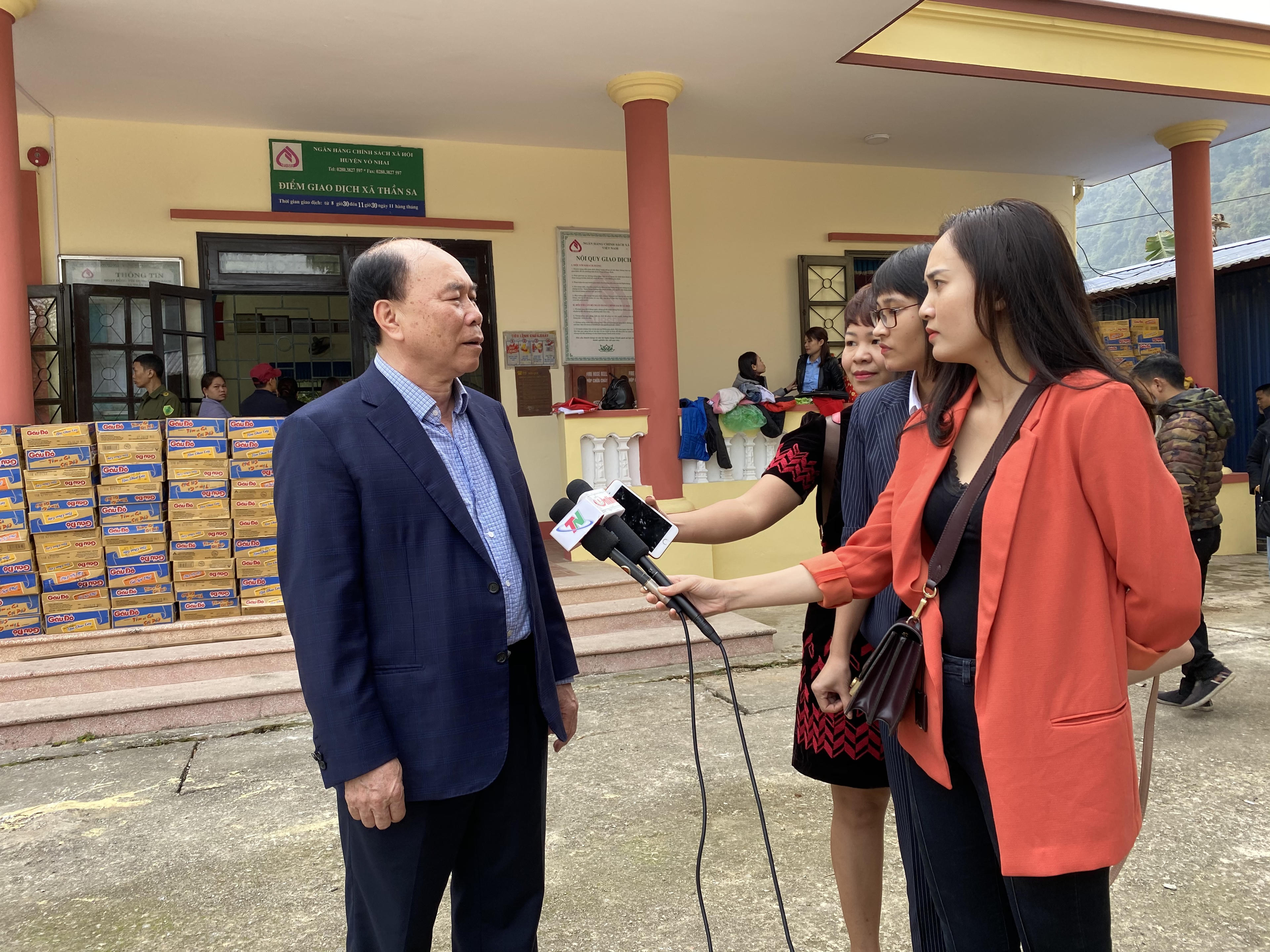 Thay mặt Tỉnh ủy, HĐND, UBND tỉnh Thái Nguyên, đồng chí Trần Quốc Tỏ, Ủy viên Trung ương Đảng, Bí thư Tỉnh ủy trao tặng lương thực và tiền cho những hộ nghèo.