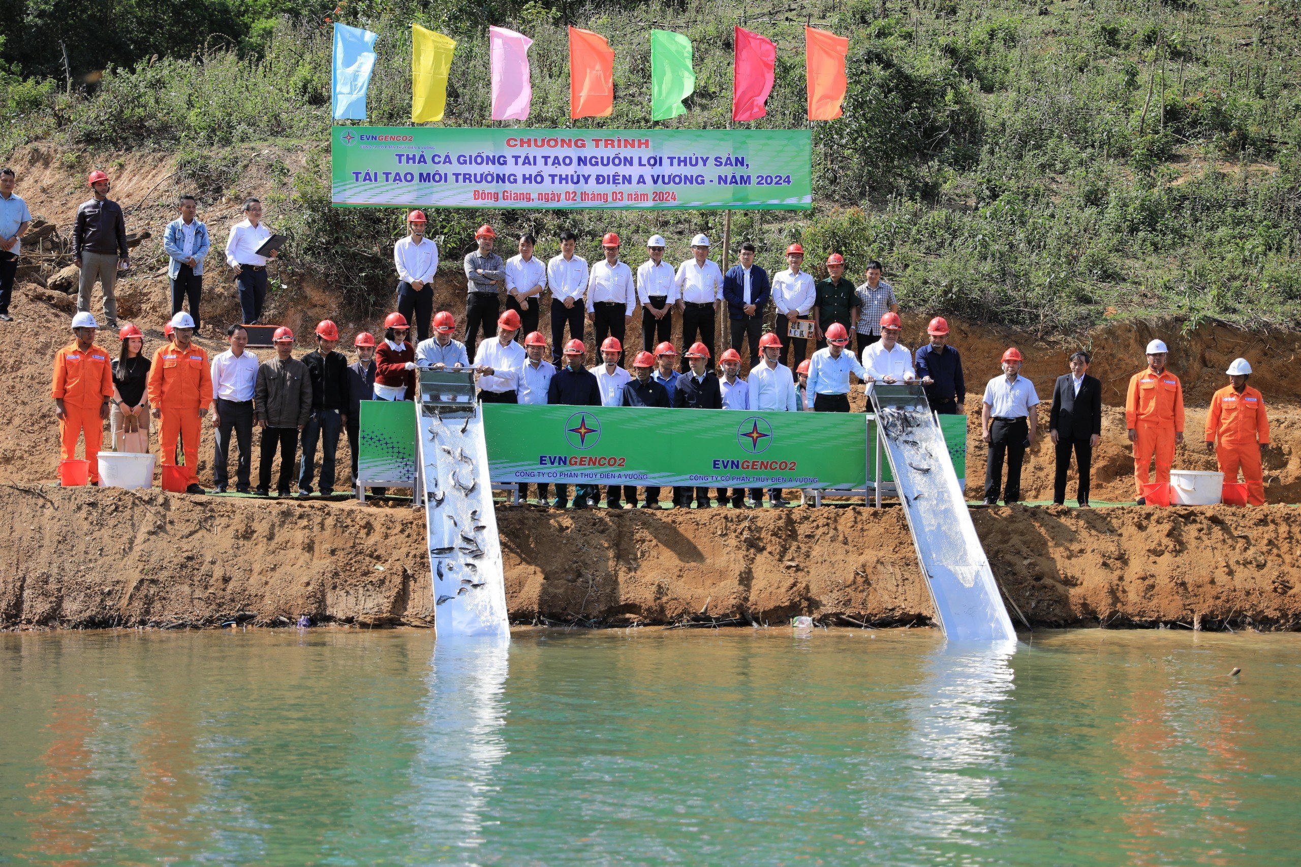 Ông Ngô Việt Hưng - Phó Tổng giám đốc Tổng công ty Phát điện 2 cho biết, hoạt động thả cá giống và trao hỗ trợ các nhà đại đoàn kết cho địa phương lần này có ý nghĩa thiết thực để phát triển bền vững nguồn lợi thuỷ sản tự nhiên trong hồ chứa thuỷ điện A Vương, góp phần ổn định và nâng cao đời sống người dân sống trong vùng dự án.