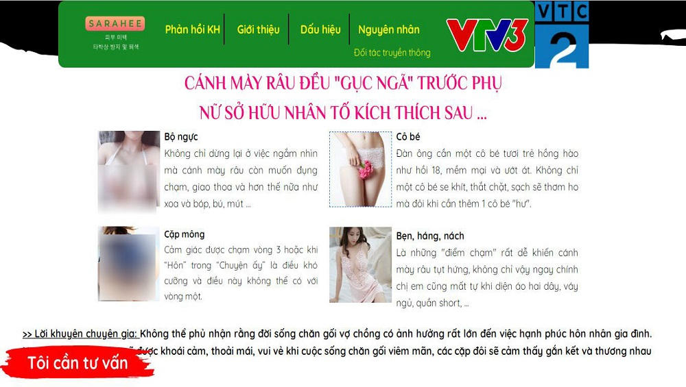 Qua quá trình tìm hiểu sản phẩm trên, nhóm PV phát hiện bên cạnh việc quảng cáo dễ gây hiểu nhầm là thuốc, trên website sarahee.vn Công ty Cổ phần Dược Mỹ phẩm Aurenda Việt Nam không e dè mà trực tiếp sử dụng những hình ảnh vùng kín, bầu ngực hay vùng mông của phụ nữ để làm minh chứng cho tác dụng của sản phẩm trên. Đặc biệt, việc sử dụng hình ảnh nhạy cảm này không hề được che mờ. Ngay cả những clip bầu ngực được cho là phản hồi của khách hàng sau khi sử dụng sản phẩm trên cũng được đăng tải trên website mà không hề che mờ.