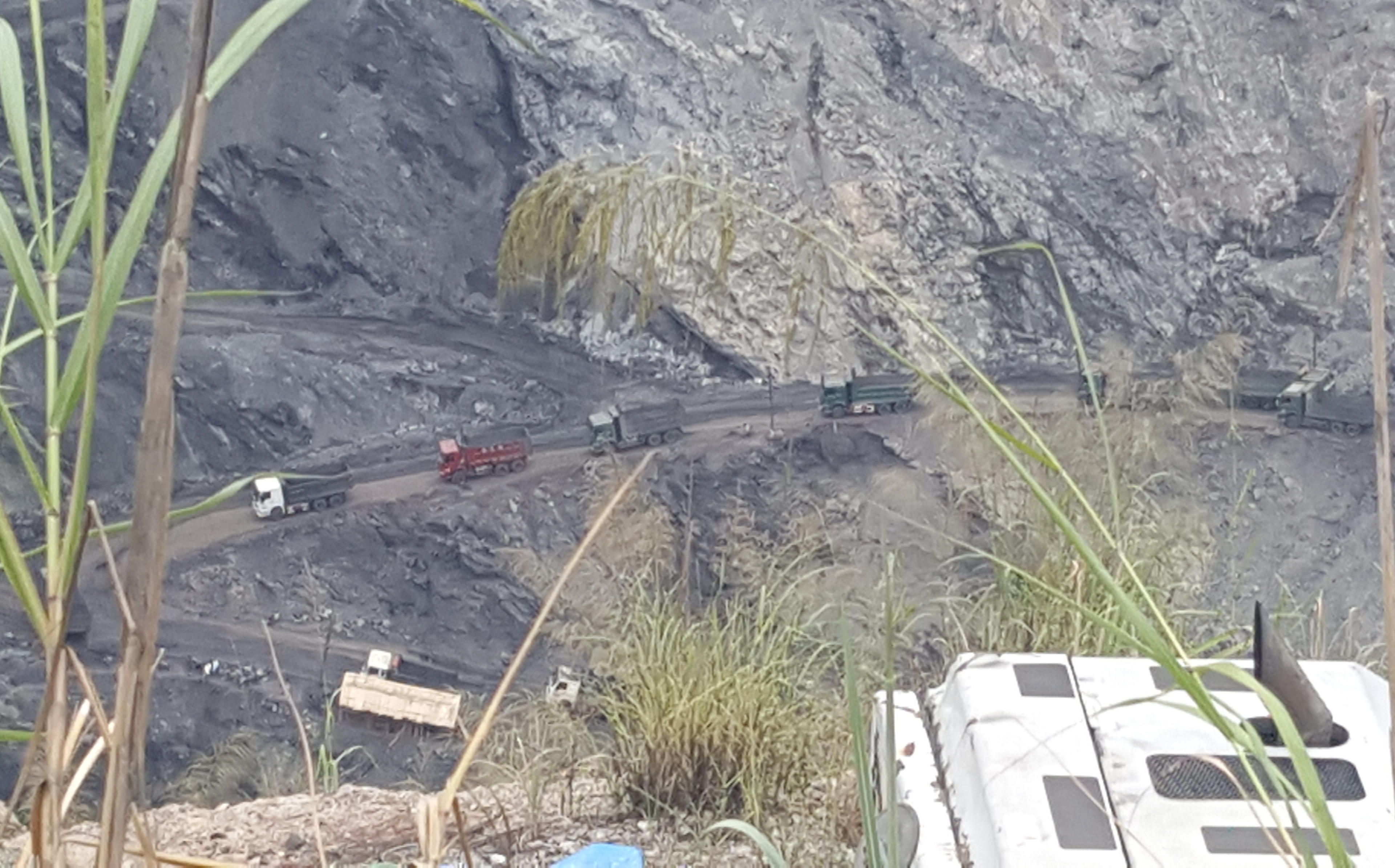Tại đây, PV ghi nhận, dọc tuyến đường bắt đầu từ địa phận của Công ty Phấn Mễ vào đến moong khai trường Bắc Làng Cẩm (theo như người dân tại địa phương gọi), có hàng trăm xe tải vận chuyển than khối lượng lớn hoạt động, ra vào liên tục.