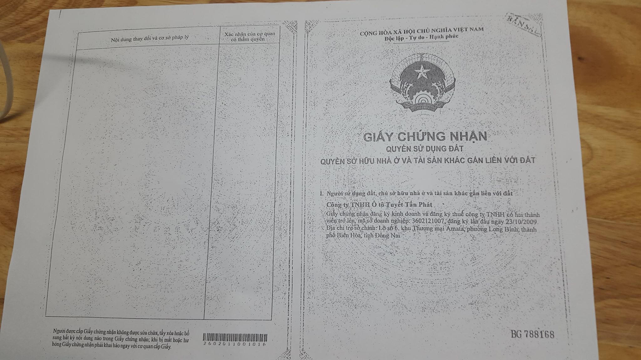 Sau khi Cty Tấn Đạt Phát vào đầu tư ở khu đất đã thuê, đơn vị này đã được Sở Xây dựng Đồng Nai cấp giấy phép xây dựng và đến ngày 11/10/2011 thì Sở Tài nguyên & Môi trường (TN&MT) tỉnh Đồng Nai cũng đã cấp GCNQSDĐ, quyền sở hữu nhà ở và tài sản khác gắn liền với đất số BG788168 cho Cty Tấn Đạt Phát (thời điểm đó công ty này còn dùng tên gọi cũ là Công ty TNHH Ô tô Tuyết Tấn Phát). Hoàn tất thủ tục, Cty Tấn Đạt Phát đã đầu tư xây dựng các công trình trên đất bao gồm phòng trưng bày và xưởng sửa chữa ô tô với giá trị hàng chục tỷ đồng. Ngoài ra, Cty Tấn Đạt Phát cũng đã trả 100% giá trị hợp đồng thuê đất cho Cty Amata Biên Hòa, bao gồm thuế và lãi trả chậm, tiền đất thô và các khoản phí…