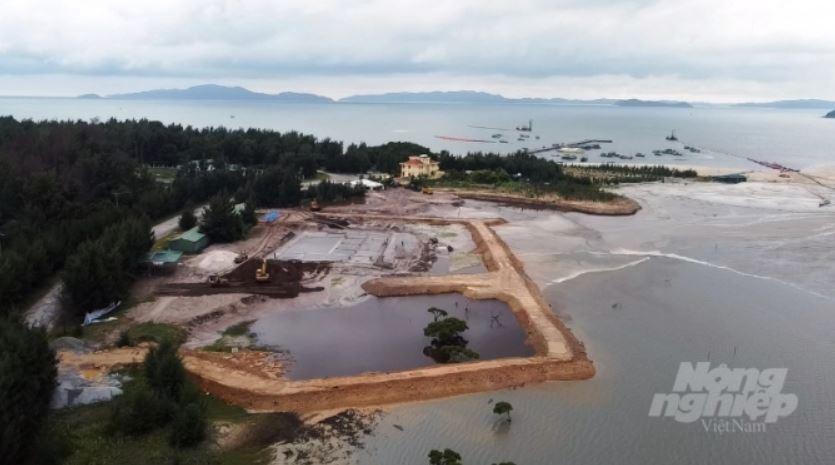 Ghi nhận của phóng viên tại dự án, đoạn đối diện trụ sở Công an xã Quan Lạn, một lượng đất và cát ước tính hàng vạn khối không rõ lấy từ đâu được chủ đầu tư dùng để kè bờ, san lấp mặt bằng cho dự án.