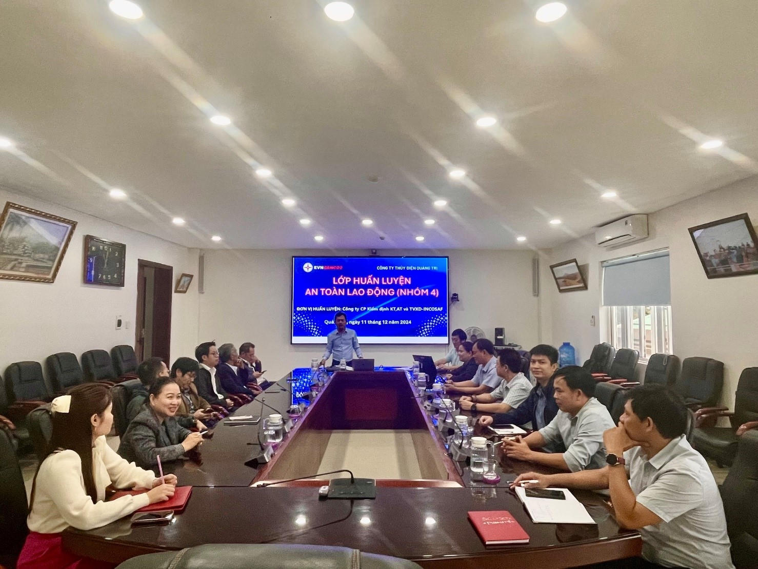 (PLVN) - Mới đây, tại văn phòng Đông Hà, Công ty Thủy điện Quảng Trị (TĐQT) phối hợp với Công ty Cổ phần kiểm định Kỹ thuật, An toàn và Tư vấn xây dựng - INCOSAF - Chi nhánh Đà Nẵng đã tổ chức lớp huấn luyện định kỳ về An toàn vệ sinh lao động (ATVSLĐ) nhóm 4.