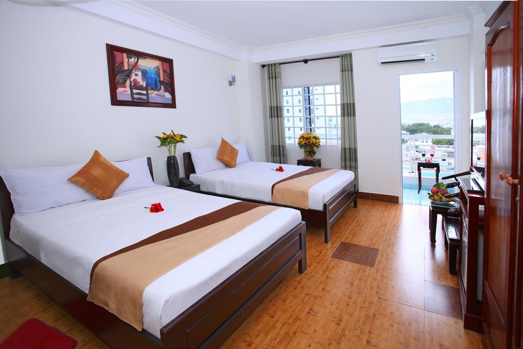Các phòng nghỉ tại khách sạn được bố trí, trang trí theo phong cách hiện đại và hệ thống ánh sáng nhẹ nhàng, ấm áp. Quý khách sẽ có cảm giác thân quen ở thành phố biển này với sự đón tiếp và phục vụ của đội ngũ nhân viên mến khách.