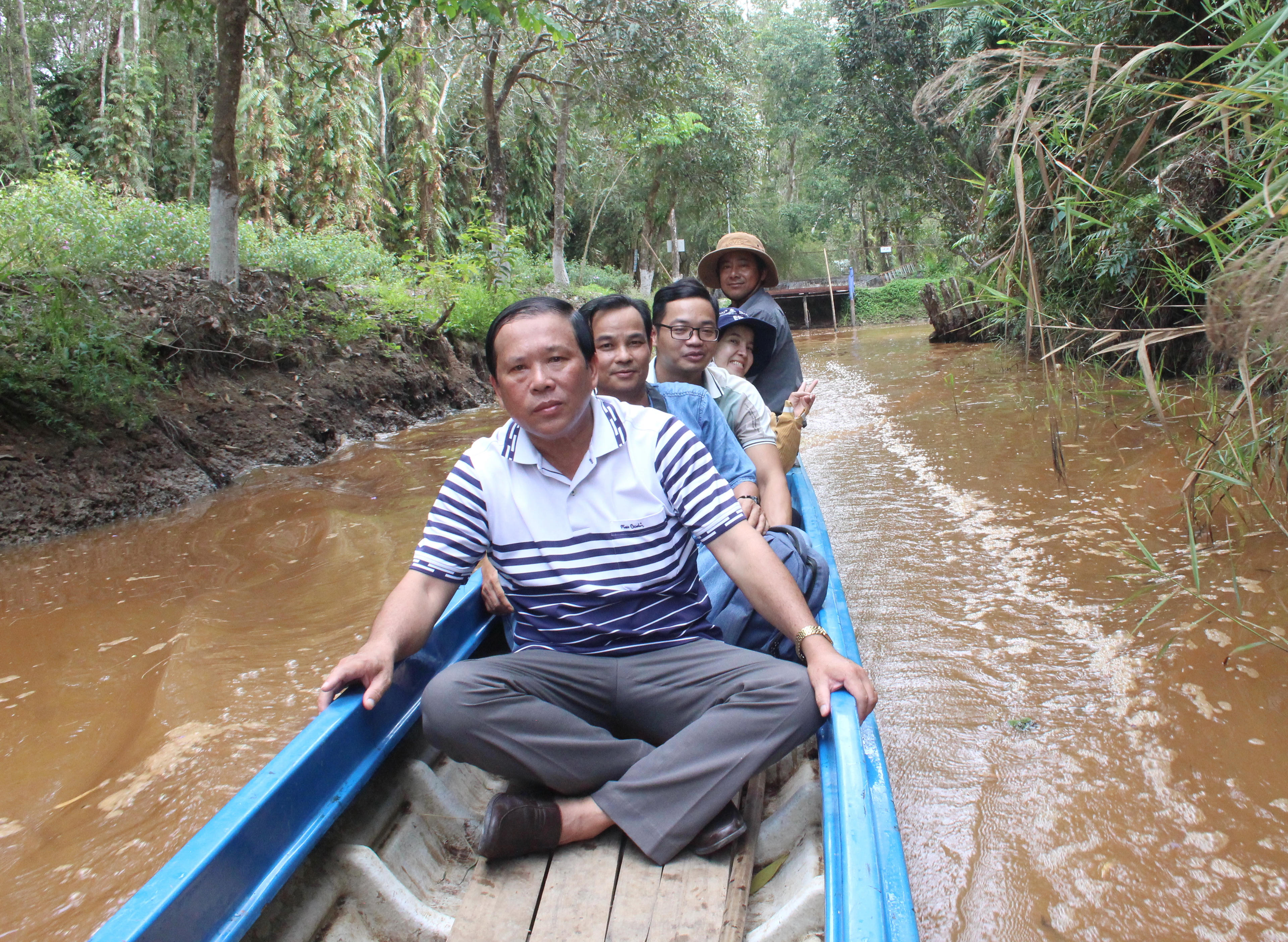 Ông Trần Ngọc Thảo - Giám đốc Công ty TNHH MTV Lâm nghiệp U Minh Hạ cùng phóng viên khảo sát tại Khu du lịch sinh thái Sông Trẹm, xã Khánh Thuận, huyện U Minh (tỉnh Cà Mau). |