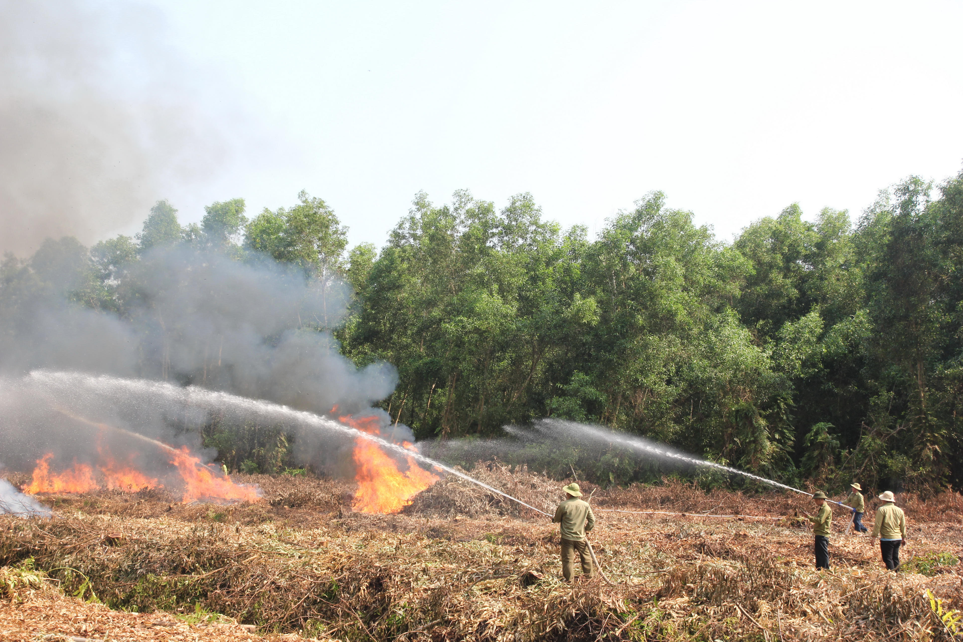Công ty TNHH MTV Lâm nghiệp U Minh Hạ (tỉnh Cà Mau), diễn tập hiệp đồng chữa cháy rừng. |