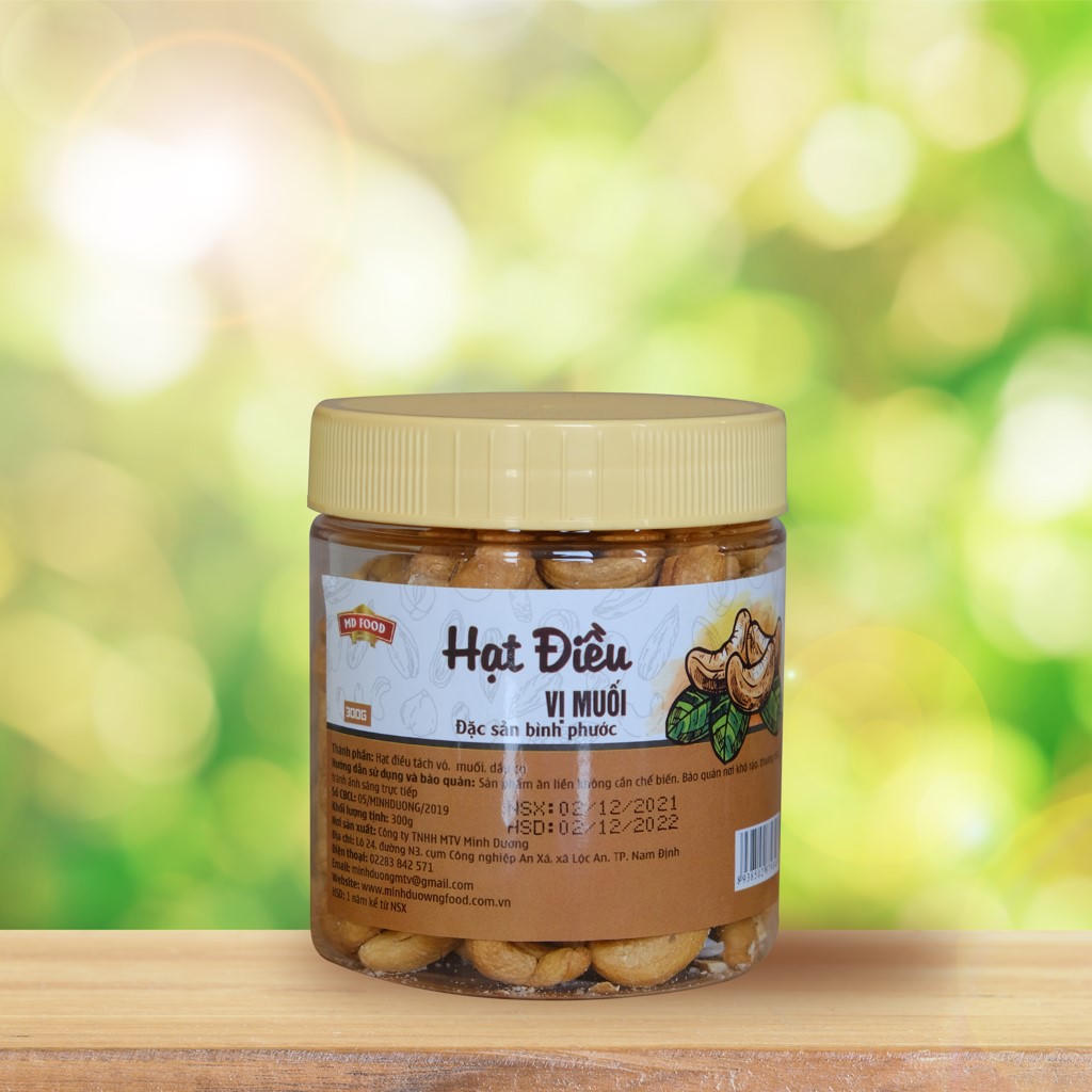 Hạt điều vị muối, đã tách vỏ, một đặc sản từ Bình Phước được Minh Dương Food sản xuất. |