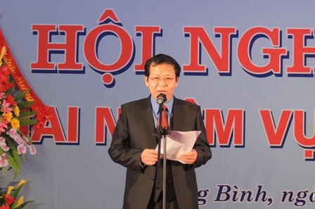 | Ông Lê Trọng Huấn – Giám đốc Công ty TNHH MTV Xổ số kiến thiết Quảng Bình báo cáo những kết quả mà công ty đã đạt được. Ảnh: Nguyên Phong. |