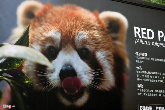 Thức ăn chủ yếu của chúng là thực vật, ăn cành lá non, trứng và một số loài côn trùng. Trong ảnh là pano quảng cáo về loài gấu trúc đỏ.