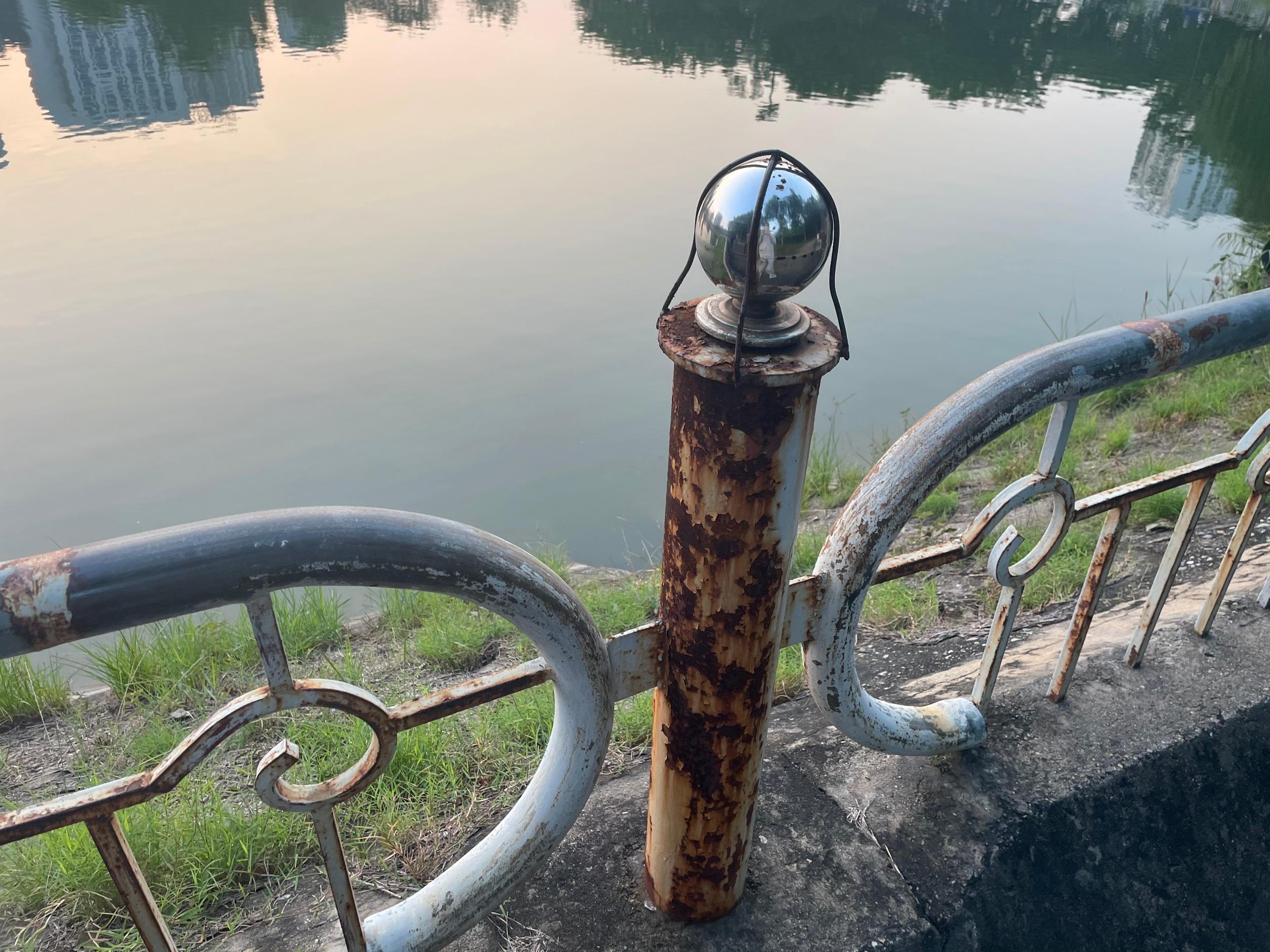 Phần lan can vỉa hè rỉ sét. |