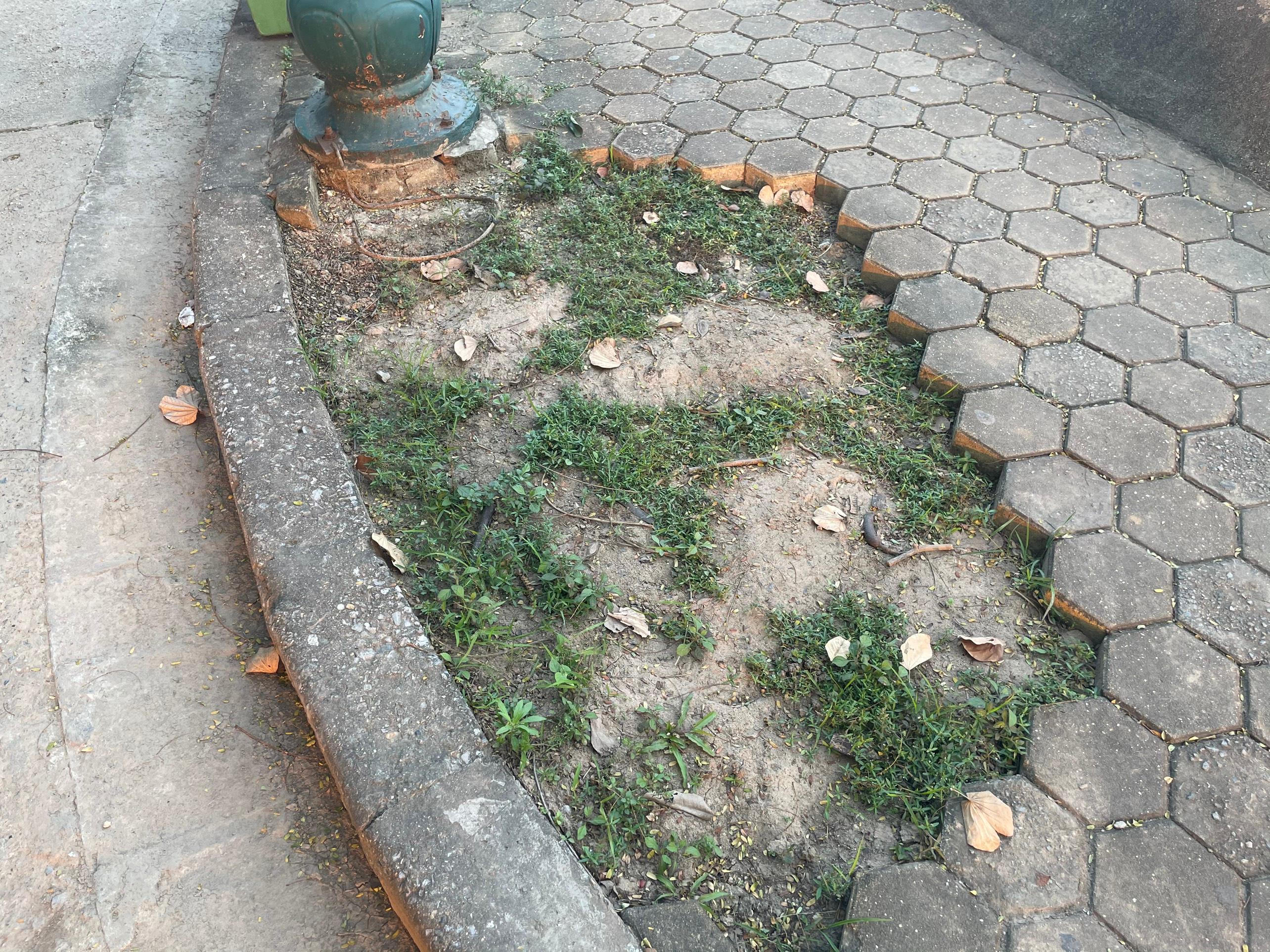 Nhiều đoạn vỉa hè tại công viên Cầu Giấy bị hư hỏng nặng, đá bong tróc đã lâu. |