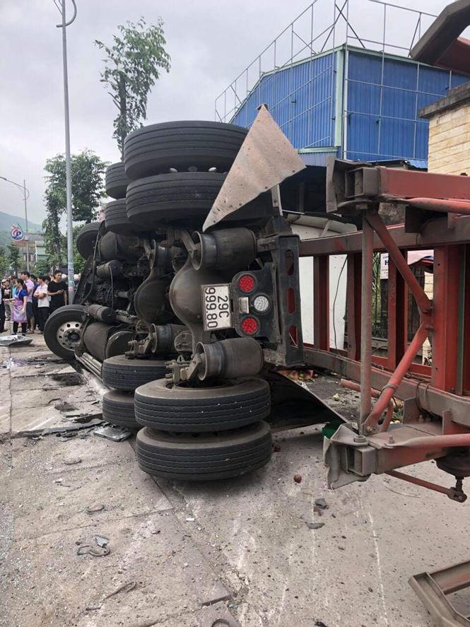 - Chiếc container mất lái đâm vào đuôi xe khách cùng chiều rồi bất ngờ lật lên vỉa hè đâm tiếp một xe tải đang đỗ bên đường khiến nhiều người thương vong.
