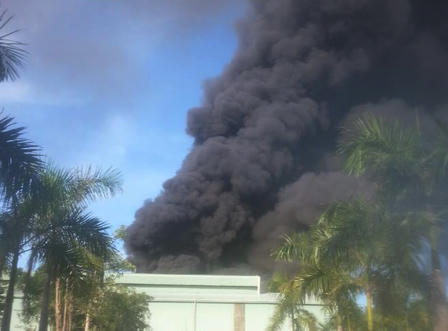 Cột khói bốc cao hàng chục mét trong vụ cháy công ty nhựa thông