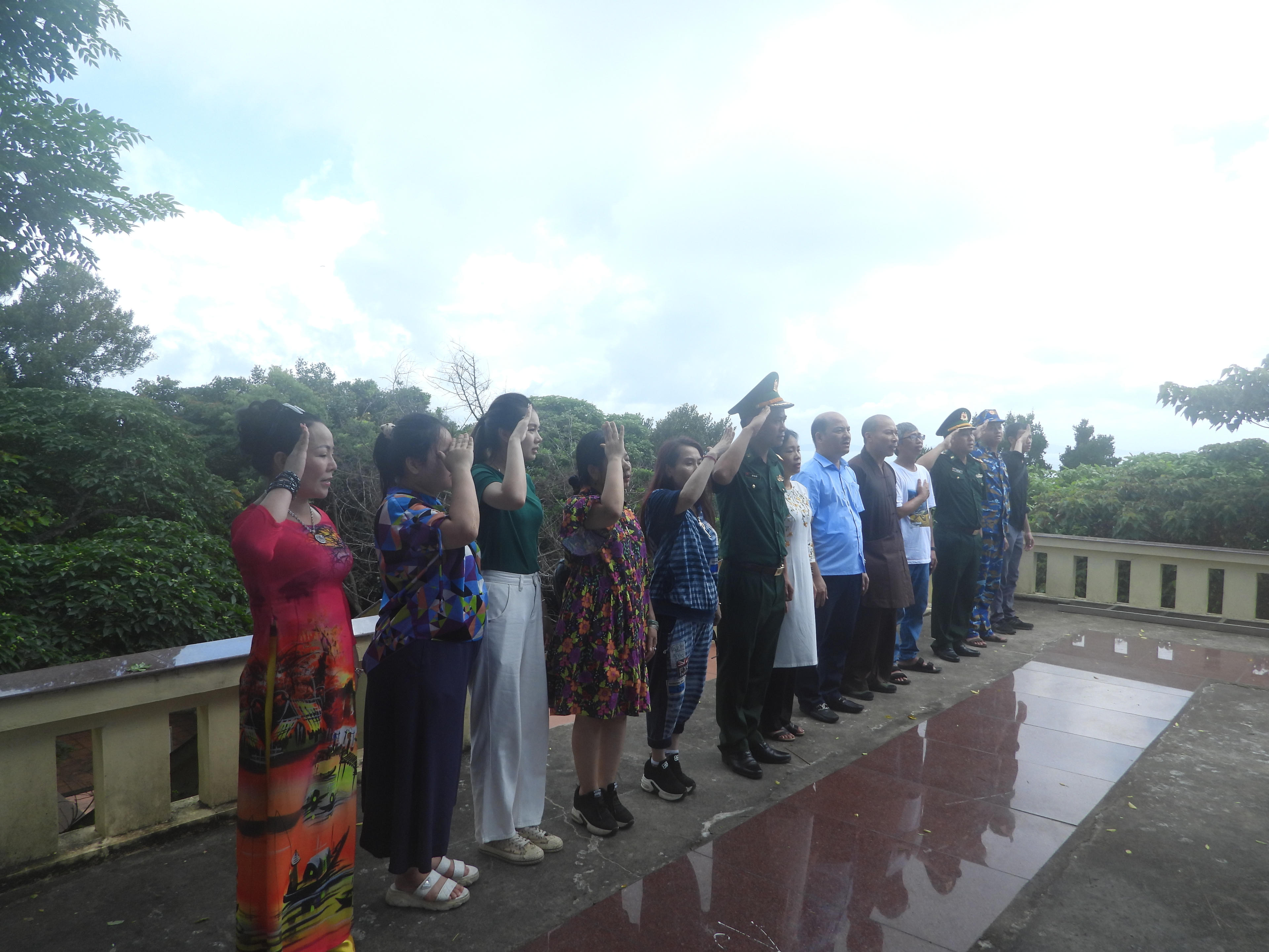 Sau khi thắp hương ở đền thờ Bác, chúng tôi lên làm lễ chào cờ và hát Quốc ca dưới chân cột cờ. Trong không gian ấy, giữa trùng khơi phần phật gió, chỉ có những trái tim tự hào, biết ơn đang hòa cùng một nhịp. Chúng tôi thêm tự hào về vùng trời, vùng biển, từng mảnh đất thiêng liêng nơi phên dậu Tổ quốc! Bài Quốc ca chúng tôi đã nghe bao lần, đã hát bao lần nhưng giây phút ấy chúng tôi thấm thía hơn bao giờ hết hồn thiêng sông núi, máu và hoa của hàng ngàn năm dựng nước và giữ nước của cha ông. Đó còn là sự hy sinh thầm lặng của quân và dân trên đảo tiền tiêu, ngày đêm canh giữ chủ quyền, là những cột mốc sống nơi phên dậu, là Tổ quốc nơi đầu sóng…