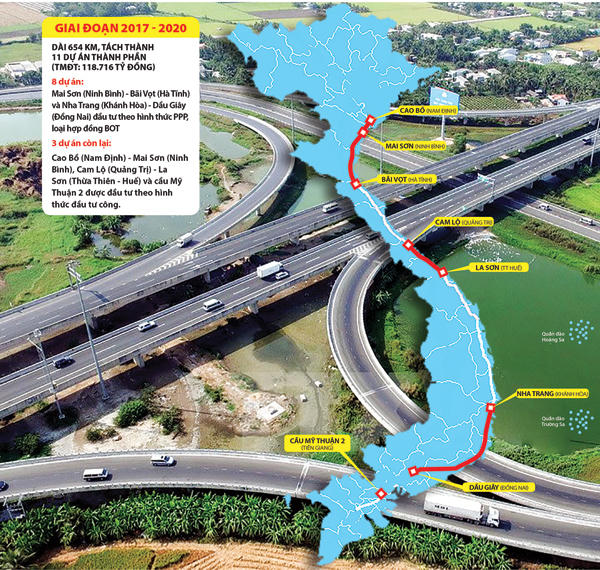 “Đến thời điểm này, công tác chuẩn bị cho 2 dự án đầu tư công nói trên diễn ra khá thuận lợi và cơ bản đảm bảo tiến độ. Riêng các dự án thành phần triển khai theo hình thức đối tác công - tư (BOT), thì đang chờ cơ chế để làm căn cứ phê duyệt phương án tài chính”, ông Phan Quang Hiển - Phó Cục trưởng Cục Quản lý xây dựng và Chất lượng công trình giao thông (Bộ GTVT) cho biết.