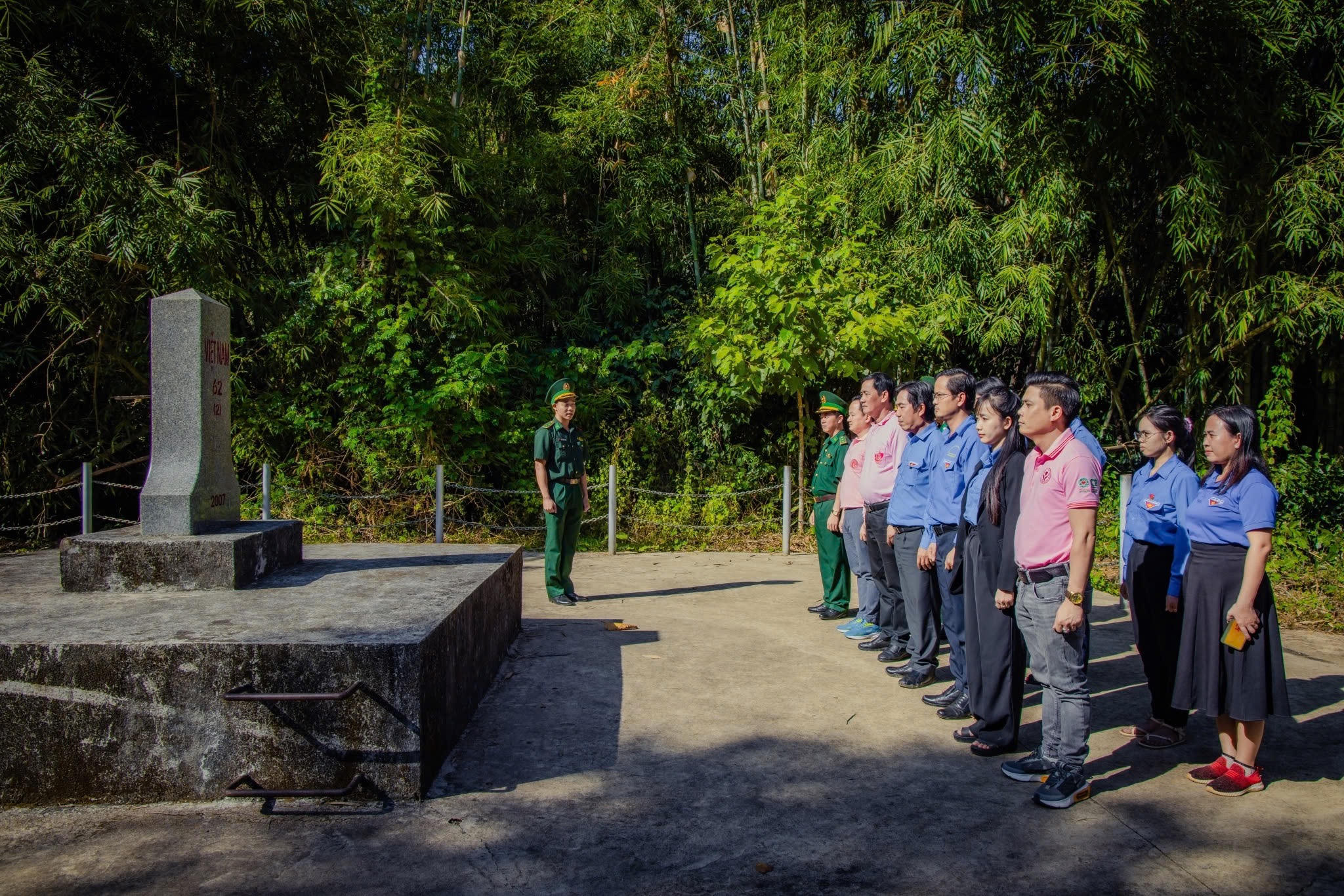 Mở đầu hành trình, đoàn đã tổ chức Lễ chào cờ thiêng liêng tại cột mốc biên giới 62, một biểu tượng quan trọng trong việc phân định ranh giới giữa Việt Nam và Vương quốc Campuchia. Tại đây, các chiến sĩ biên phòng đã giới thiệu về quá trình cắm mốc và những nỗ lực bảo vệ cột mốc này hàng ngày, góp phần giữ vững chủ quyền lãnh thổ quốc gia.