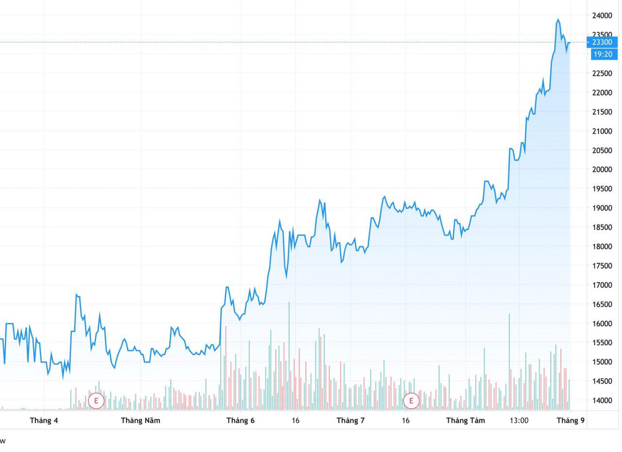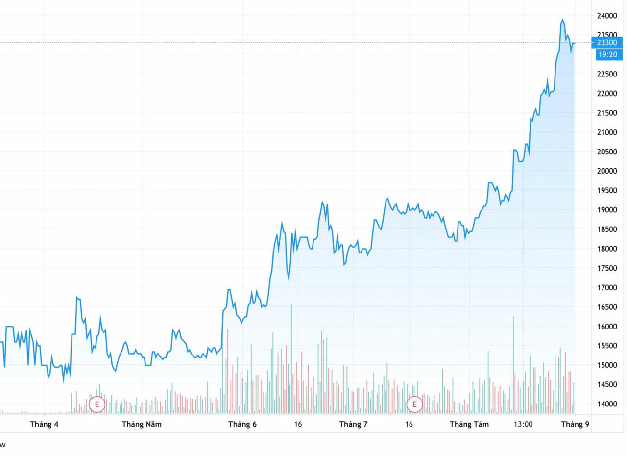 Một trong những điểm sáng của nhóm cổ phiếu BĐS là các doanh nghiệp thuộc phân khúc BĐS khu công nghiệp, phân phối kinh doanh bất động sản. Đơn cử, mã CRE của Cen Land đang trở thành cổ phiếu hot khi có mức tăng tích cực 61% kể từ đáy thấp nhất hồi tháng 3/2020. Chốt phiên ngày 28/8, CRE đang giao dịch ở mức giá 23,800 đồng/cổ phiếu.
