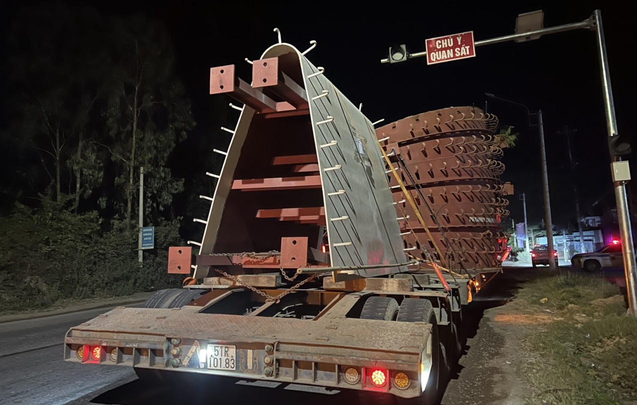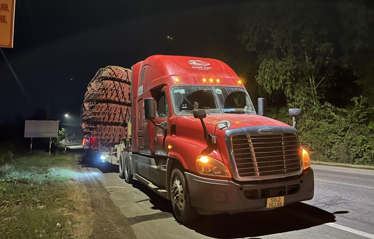 Theo đó, tối 23/4, các phương tiện được Công ty TNHH MTV Nam Đạt sử dụng, gồm: xe đầu kéo 50LD 164.29 kéo theo rơ moóc 51R 101.83 và xe đầu kéo 50LD 163.66 kéo theo rơ moóc 51R 135.42 chở kiện thiết bị điện từ tỉnh Bình Định đi tỉnh Gia Lai.