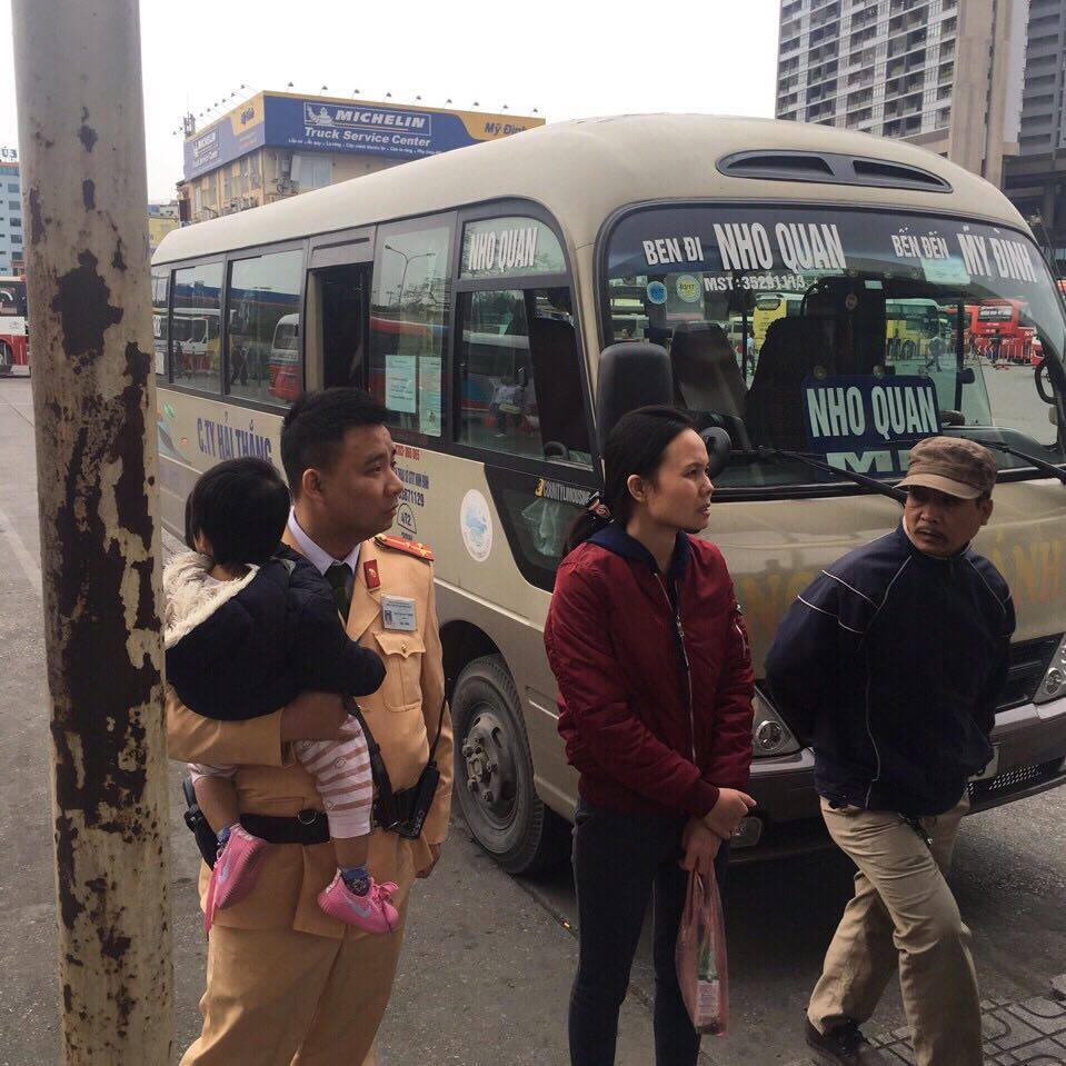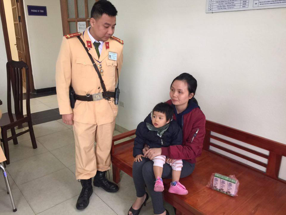 Cụ thể, sáng 9/2, trong lúc tuần tra làm nhiệm vụ tại khu vực Bến xe Mỹ Đình, Thượng úy Trần Quang Chinh thuộc Đội CSGT số 6 - Phòng CSGT TP Hà Nội phát hiện một người phụ nữ ôm con nhỏ dáng điệu lo lắng, thất thểu đi trên đường. Thượng úy Chinh cùng các chiến sĩ đã dừng lại hỏi han tình hình.
