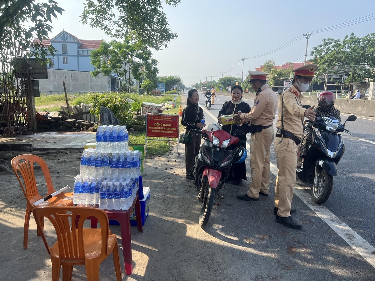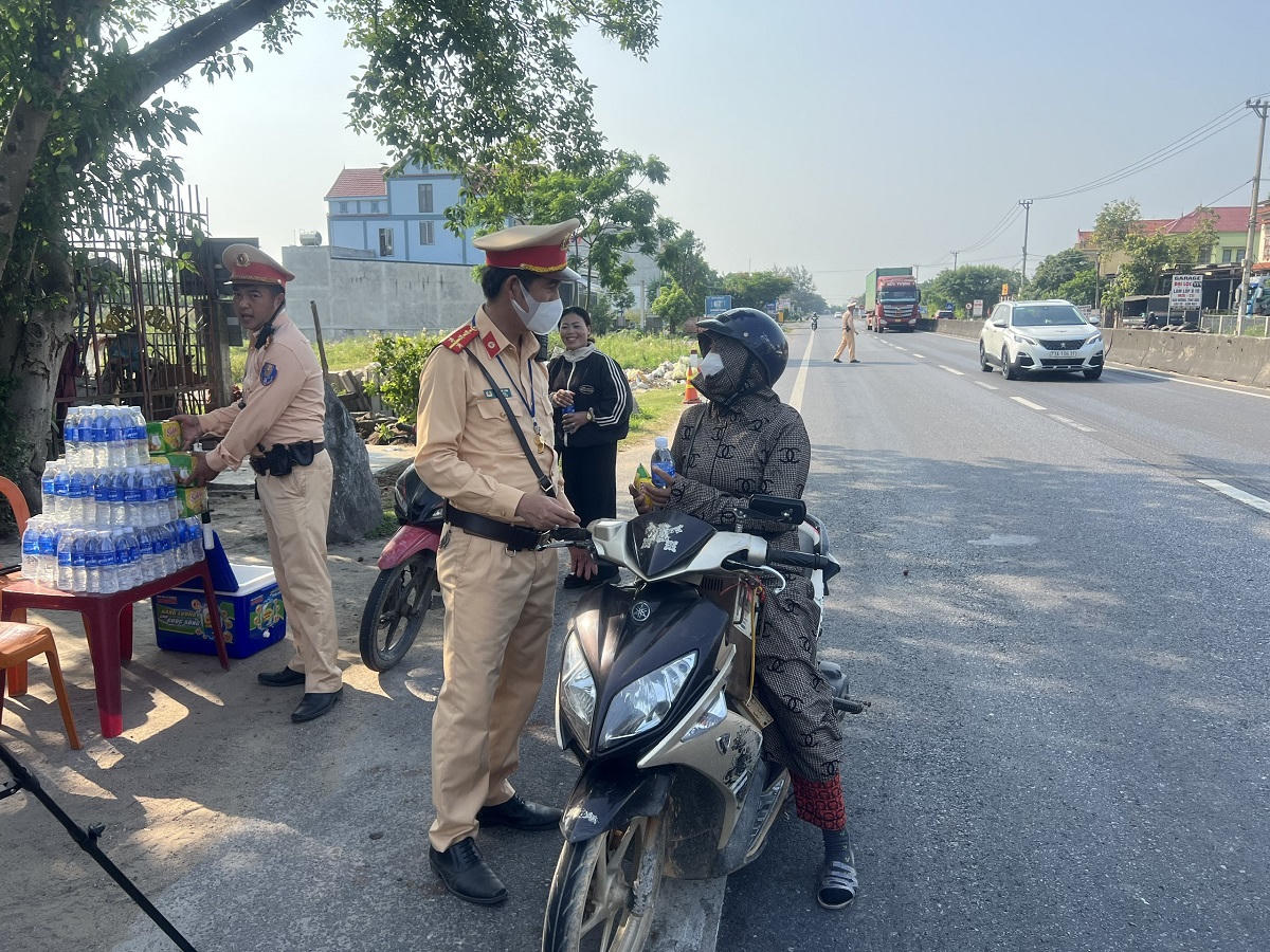 CSGT Quảng Bình tiếp đồ ăn, nước uống cho người dân giữa trưa hè