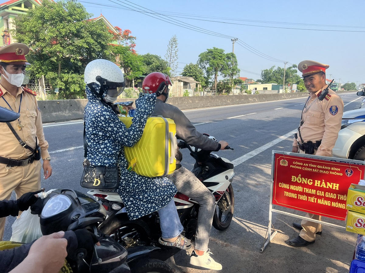 Chia sẻ vất vả với người tham gia giao thông trong những ngày thời tiết nắng nóng trên diện rộng khắp các tỉnh miền Trung, Phòng CSGT Công an tỉnh Quảng Bình đã tổ chức chương trình phát sữa, nước, bánh kẹo miễn phí cho người tham gia giao thông trên các tuyến Quốc lộ đi qua trên địa bàn.