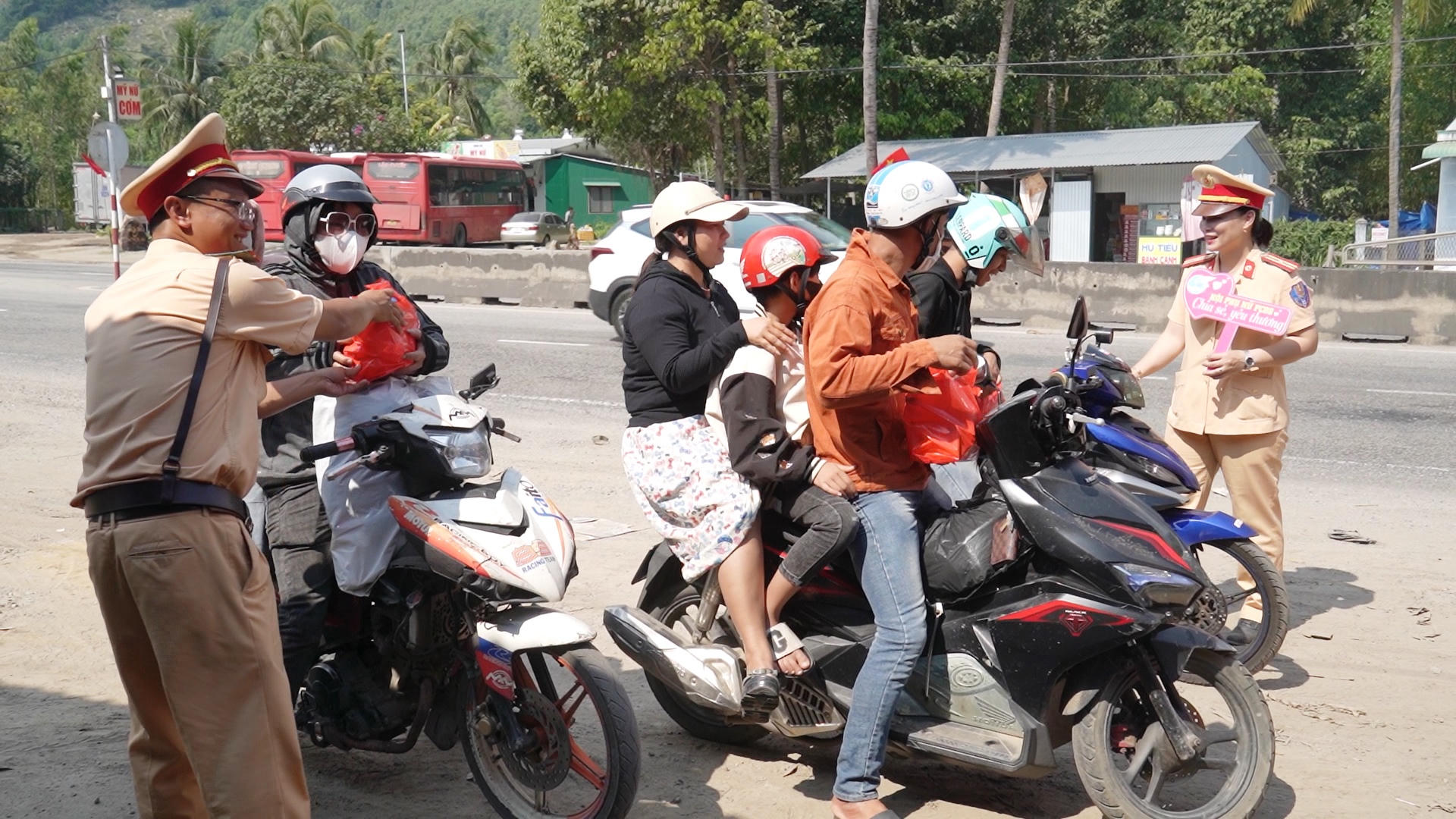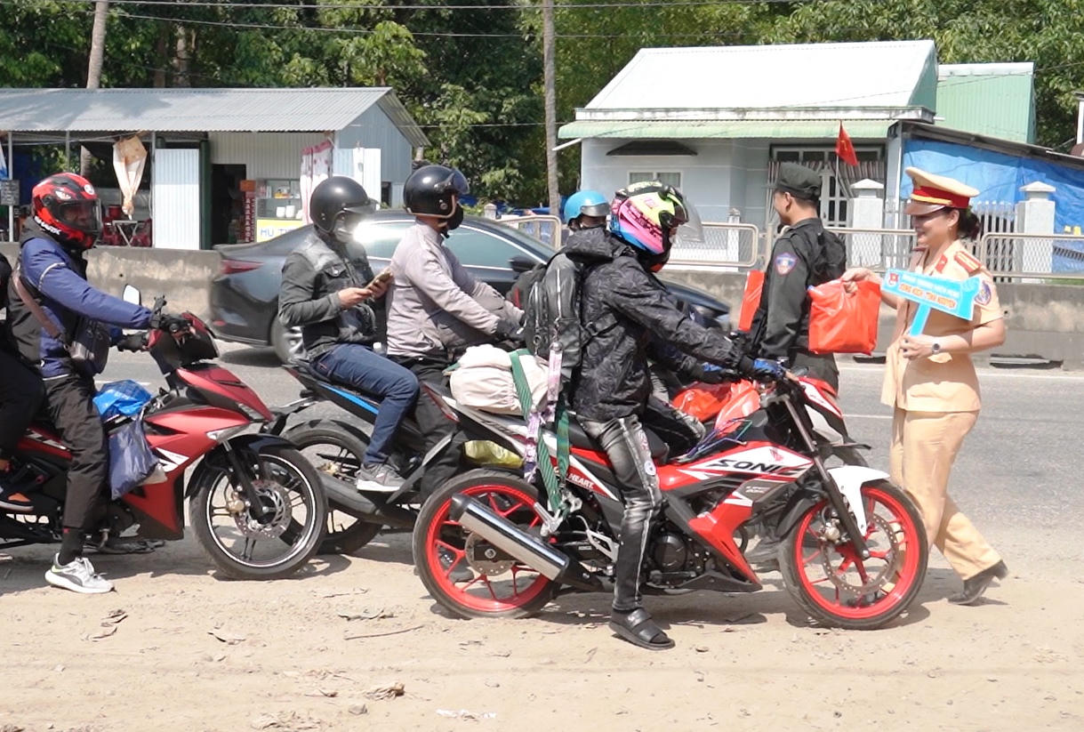 Kèm với những phần nước, sữa, cán bộ, chiến sĩ của Phòng CSGT cũng dặn dò người dân chú ý đi lại cẩn thận. Cùng với đó, những tấm thiệp chúc xuân kèm thông điệp tuyên truyền an toàn giao thông và hướng dẫn phản ánh thông tin liên quan trật tự an toàn giao thông... cũng được tặng cho nhiều người dân trên hành trình về quê ăn tết khi đi qua địa bàn tỉnh Quảng Nam. Hoạt động được duy trì đến trước giao thừa.