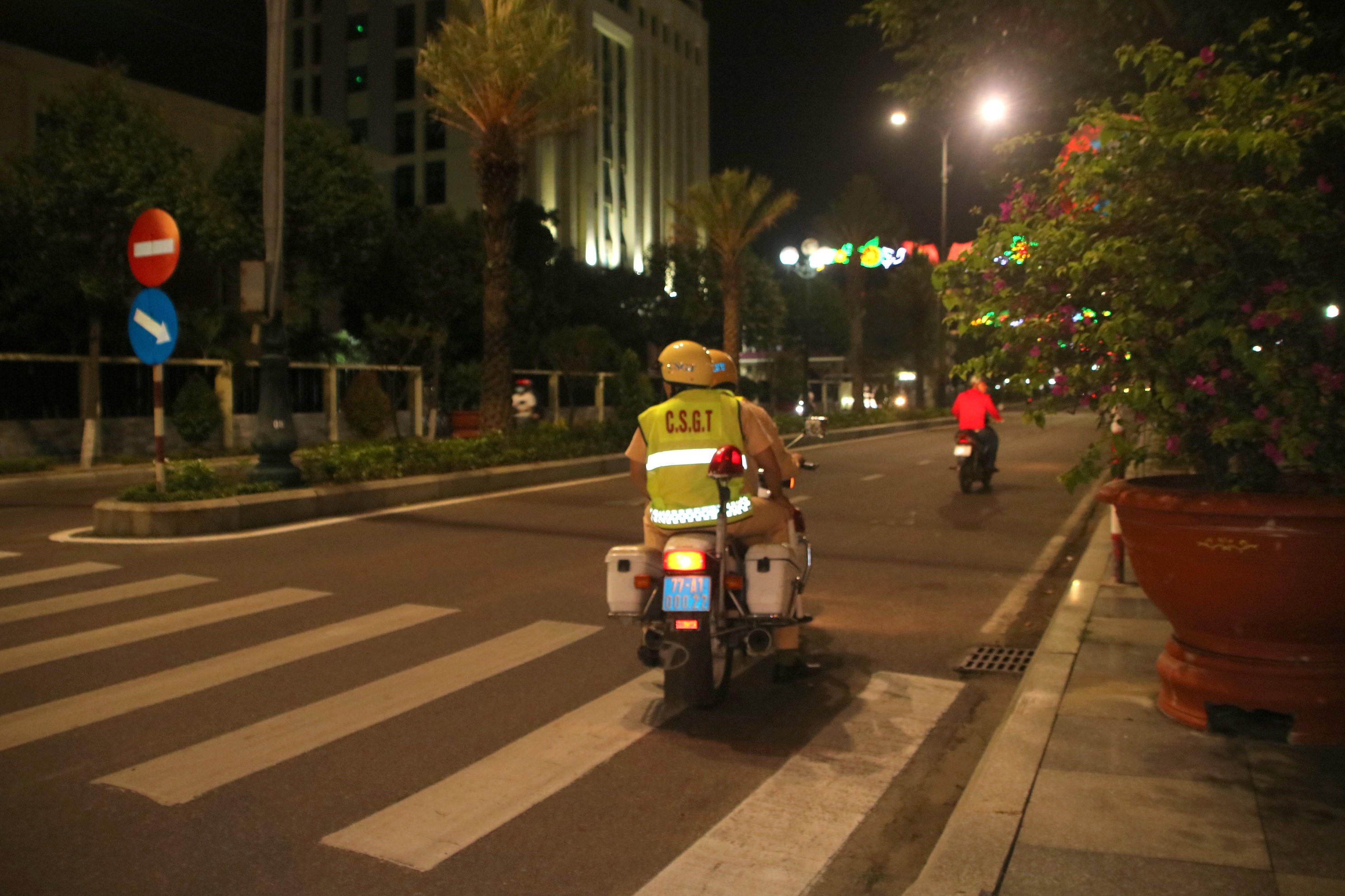 | CSGT Công an TP Quy Nhơn tuần tra lưu động, xử lý vi phạm nồng độ cồn trên đường Trần Phú. |